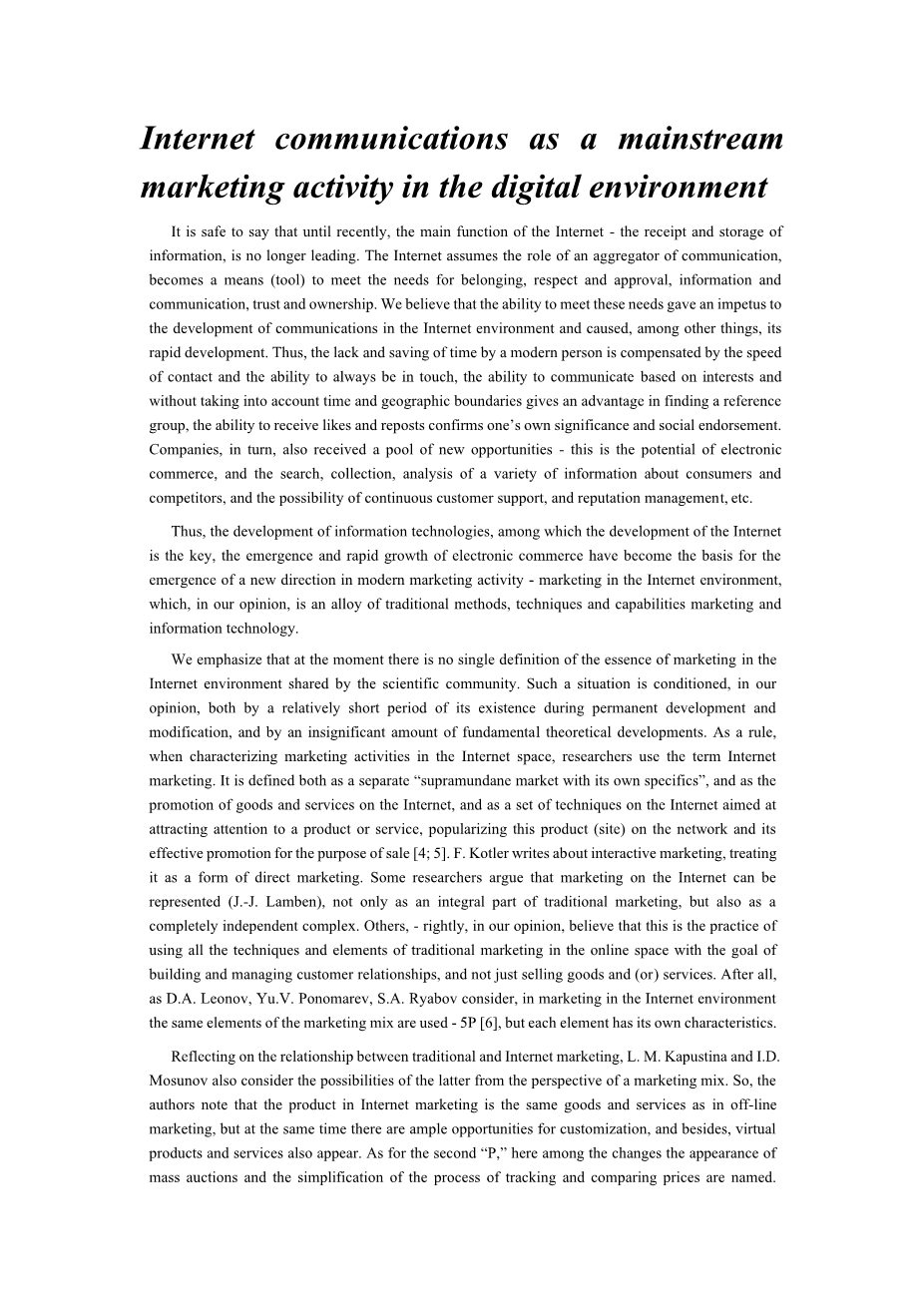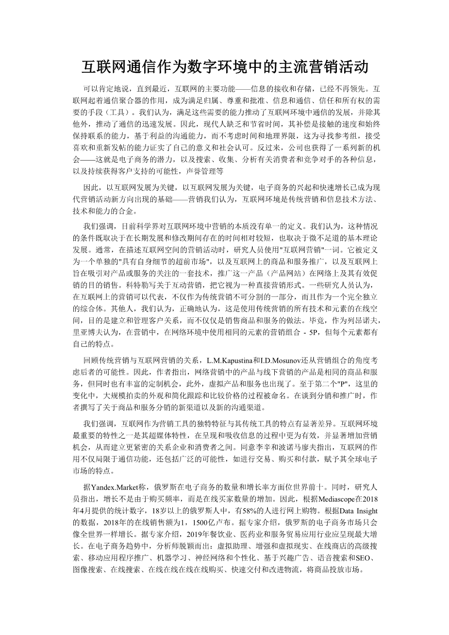 互联网通信作为数字环境中的主流营销活动外文翻译资料