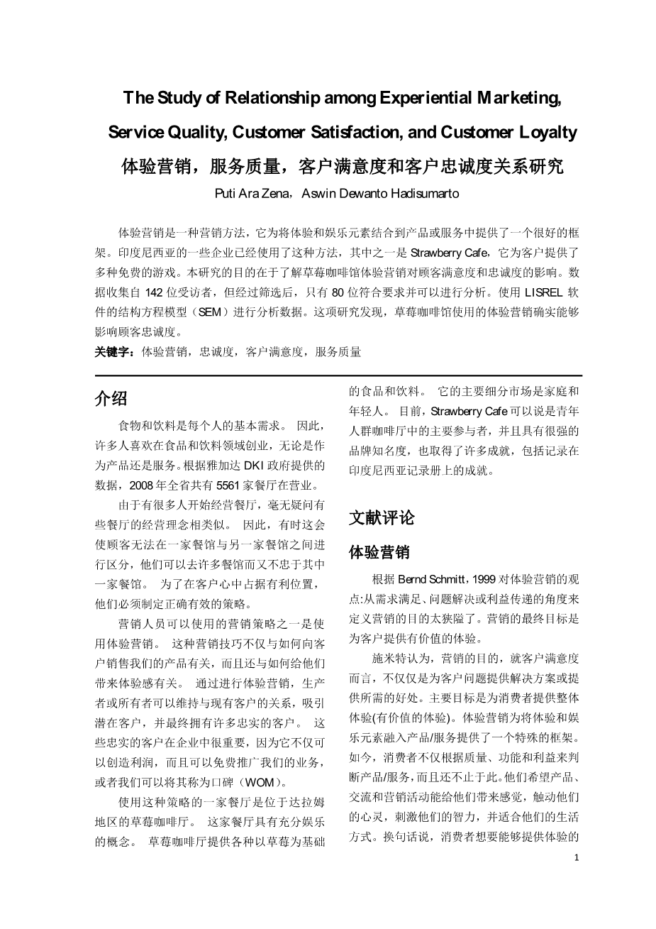 体验营销,服务质量,客户满意度和客户忠诚度关系研究外文翻译资料 2023-02-18 21:34:57 英语原文共 10 页,剩余内容已隐藏,支付完成后下载完整资料 英语译文共 11 页,剩余内容已隐藏,支付完成后下载完整资料 资料编号:[234906],资料为PDF文档或Word文档,PDF文档可免费转换为Word 您需要先支付 30元 才能查看全部内容!立即支付 发小红书推广免费获取该资料资格。点击链接进入获取推广文案即可: Ai一键组稿 | 降AI率 | 降重复率 | 论文一键排版 PREVIOUS NEXT 您可能感兴趣的文章 我国网络游戏消费行为影响因素研究开题报告 我国智能可穿戴设备市场现状及需求预测——以小米手环为例文献综述 绿色家居产品的消费者购买意愿影响因素研究文献综述 大学生绿色食品消费行为与消费理念的研究开题报告 自媒体受众信任度对消费者购买意愿影响的研究——以bilibili为例开题报告 苏省产业结构变动对能源消费影响的实证研究:基于灰色关联法的分析开题报告 新零售模式对企业绩效的影响研究开题报告 数字时代下00后、90后和80后消费者画像比较研究文献综述 经济型酒店营销策略研究-以武汉如家快捷酒店为例文献综述 经济型酒店营销策略研究-以武汉如家快捷酒店为例开题报告