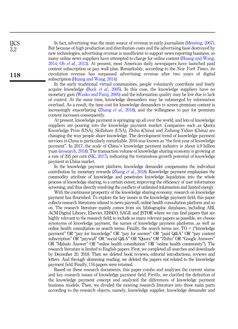 在早期的传统虚拟社区中,人们自愿贡献并自由获取知识。在这种情况下,知识提供者没有货币收益,信息质量可能由于缺乏控制而降低。同时,知识需求者可能被信息超载淹没。因此,知识需者筛选优质内容的时间成本日益加剧,支付优质内容的意愿也随之增加。