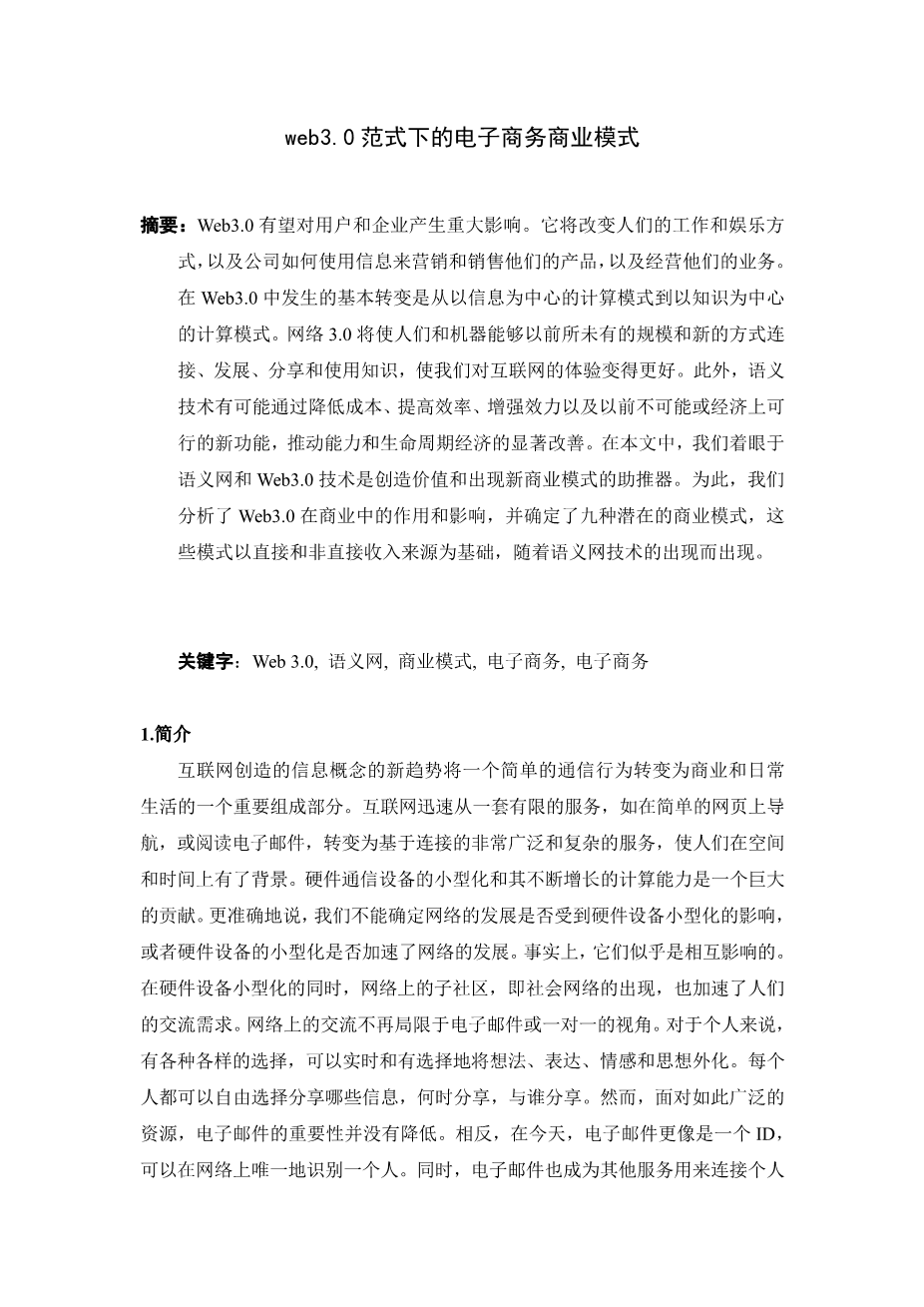 web3.0范式下的电子商务商业模式外文翻译资料 2023-04-14 17:23:17 英语原文共 12 页,剩余内容已隐藏,支付完成后下载完整资料 英语译文共 13 页,剩余内容已隐藏,支付完成后下载完整资料 资料编号:[589422],资料为PDF文档或Word文档,PDF文档可免费转换为Word 您需要先支付 30元 才能查看全部内容!立即支付 发小红书推广免费获取该资料资格。点击链接进入获取推广文案即可: Ai一键组稿 | 降AI率 | 降重复率 | 论文一键排版 PREVIOUS NEXT 您可能感兴趣的文章 我国网络游戏消费行为影响因素研究开题报告 我国智能可穿戴设备市场现状及需求预测——以小米手环为例文献综述 绿色家居产品的消费者购买意愿影响因素研究文献综述 大学生绿色食品消费行为与消费理念的研究开题报告 自媒体受众信任度对消费者购买意愿影响的研究——以bilibili为例开题报告 苏省产业结构变动对能源消费影响的实证研究:基于灰色关联法的分析开题报告 新零售模式对企业绩效的影响研究开题报告 数字时代下00后、90后和80后消费者画像比较研究文献综述 经济型酒店营销策略研究-以武汉如家快捷酒店为例文献综述 经济型酒店营销策略研究-以武汉如家快捷酒店为例开题报告