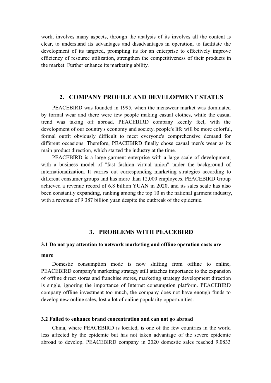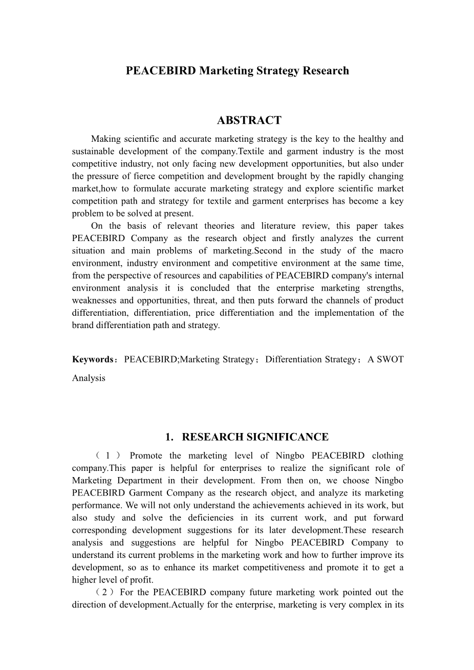 太平鸟公司营销战略研究外文翻译资料 2023-07-11 10:07:35 英语原文共 6 页,剩余内容已隐藏,支付完成后下载完整资料 英语译文共 6 页,剩余内容已隐藏,支付完成后下载完整资料 资料编号:[604571],资料为PDF文档或Word文档,PDF文档可免费转换为Word 您需要先支付 30元 才能查看全部内容!立即支付 发小红书推广免费获取该资料资格。点击链接进入获取推广文案即可: Ai一键组稿 | 降AI率 | 降重复率 | 论文一键排版 PREVIOUS NEXT 您可能感兴趣的文章 我国网络游戏消费行为影响因素研究开题报告 我国智能可穿戴设备市场现状及需求预测——以小米手环为例文献综述 绿色家居产品的消费者购买意愿影响因素研究文献综述 大学生绿色食品消费行为与消费理念的研究开题报告 自媒体受众信任度对消费者购买意愿影响的研究——以bilibili为例开题报告 苏省产业结构变动对能源消费影响的实证研究:基于灰色关联法的分析开题报告 新零售模式对企业绩效的影响研究开题报告 数字时代下00后、90后和80后消费者画像比较研究文献综述 经济型酒店营销策略研究-以武汉如家快捷酒店为例文献综述 经济型酒店营销策略研究-以武汉如家快捷酒店为例开题报告