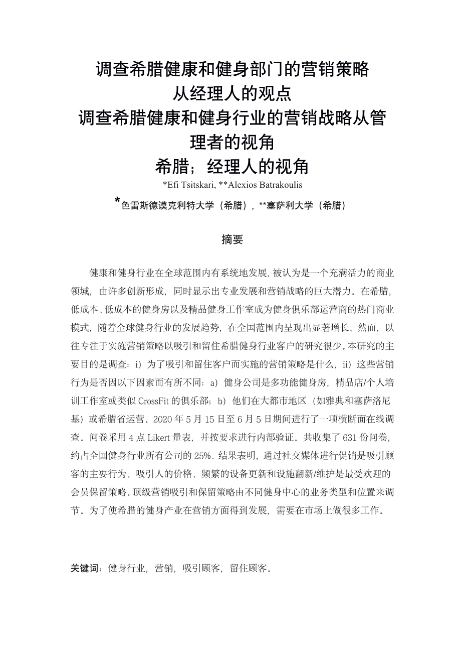 调查希腊健康和健身部门的营销策略;管理者的观点调查希腊健康和健身部门的营销策略外文翻译资料 2023-07-12 10:17:21 英语原文共 5 页,剩余内容已隐藏,支付完成后下载完整资料 英语译文共 4 页,剩余内容已隐藏,支付完成后下载完整资料 资料编号:[604297],资料为PDF文档或Word文档,PDF文档可免费转换为Word 您需要先支付 30元 才能查看全部内容!立即支付 发小红书推广免费获取该资料资格。点击链接进入获取推广文案即可: Ai一键组稿 | 降AI率 | 降重复率 | 论文一键排版 PREVIOUS NEXT 您可能感兴趣的文章 我国网络游戏消费行为影响因素研究开题报告 我国智能可穿戴设备市场现状及需求预测——以小米手环为例文献综述 绿色家居产品的消费者购买意愿影响因素研究文献综述 大学生绿色食品消费行为与消费理念的研究开题报告 自媒体受众信任度对消费者购买意愿影响的研究——以bilibili为例开题报告 苏省产业结构变动对能源消费影响的实证研究:基于灰色关联法的分析开题报告 新零售模式对企业绩效的影响研究开题报告 数字时代下00后、90后和80后消费者画像比较研究文献综述 经济型酒店营销策略研究-以武汉如家快捷酒店为例文献综述 经济型酒店营销策略研究-以武汉如家快捷酒店为例开题报告