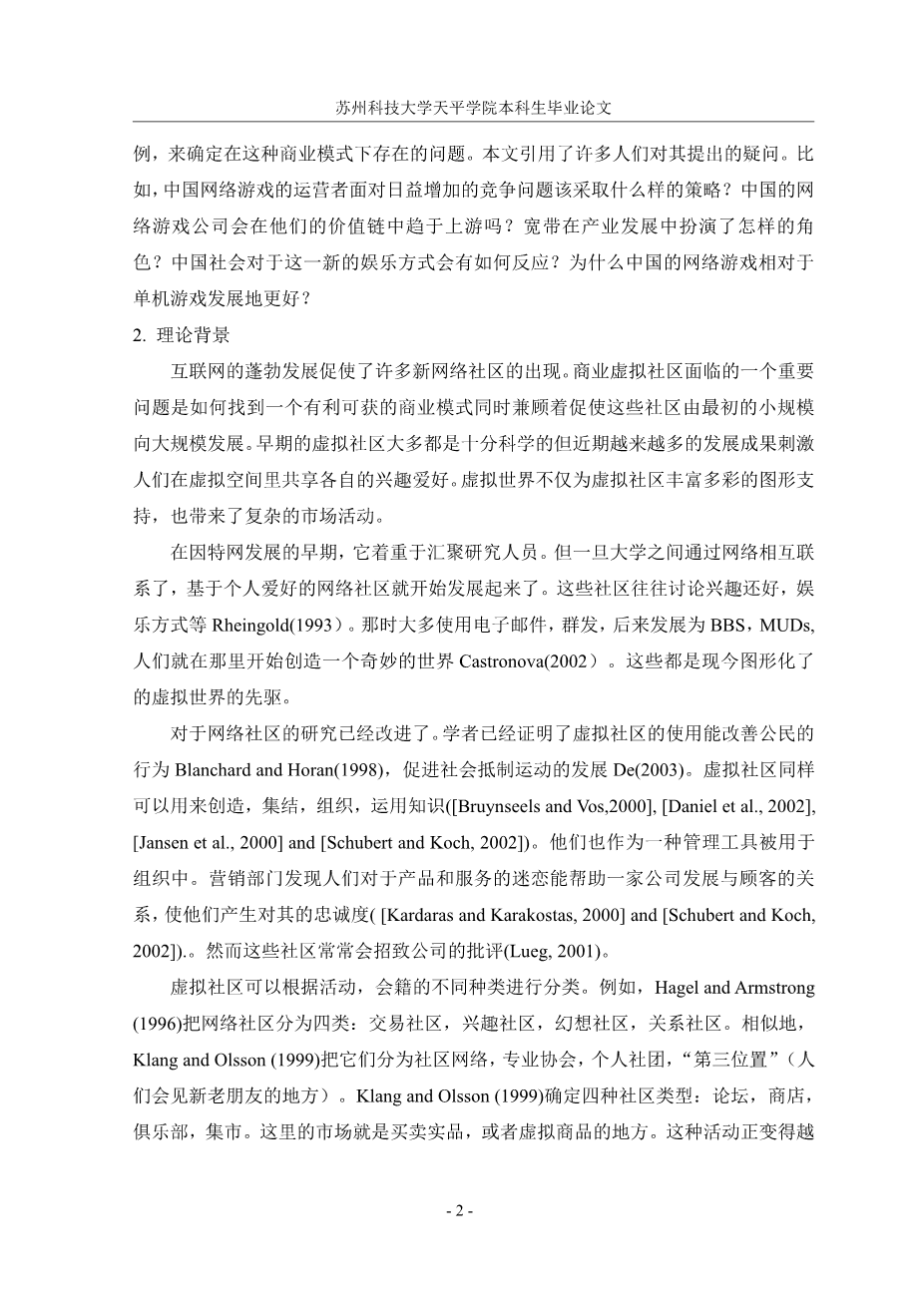 中国网络游戏产业的商业模式和运作问题外文翻译资料 2023-08-04 19:04:13 英语原文共 15 页,剩余内容已隐藏,支付完成后下载完整资料 英语译文共 6 页,剩余内容已隐藏,支付完成后下载完整资料 资料编号:[613295],资料为PDF文档或Word文档,PDF文档可免费转换为Word 您需要先支付 30元 才能查看全部内容!立即支付 发小红书推广免费获取该资料资格。点击链接进入获取推广文案即可: Ai一键组稿 | 降AI率 | 降重复率 | 论文一键排版 PREVIOUS NEXT 您可能感兴趣的文章 我国网络游戏消费行为影响因素研究开题报告 我国智能可穿戴设备市场现状及需求预测——以小米手环为例文献综述 绿色家居产品的消费者购买意愿影响因素研究文献综述 大学生绿色食品消费行为与消费理念的研究开题报告 自媒体受众信任度对消费者购买意愿影响的研究——以bilibili为例开题报告 苏省产业结构变动对能源消费影响的实证研究:基于灰色关联法的分析开题报告 新零售模式对企业绩效的影响研究开题报告 数字时代下00后、90后和80后消费者画像比较研究文献综述 经济型酒店营销策略研究-以武汉如家快捷酒店为例文献综述 经济型酒店营销策略研究-以武汉如家快捷酒店为例开题报告