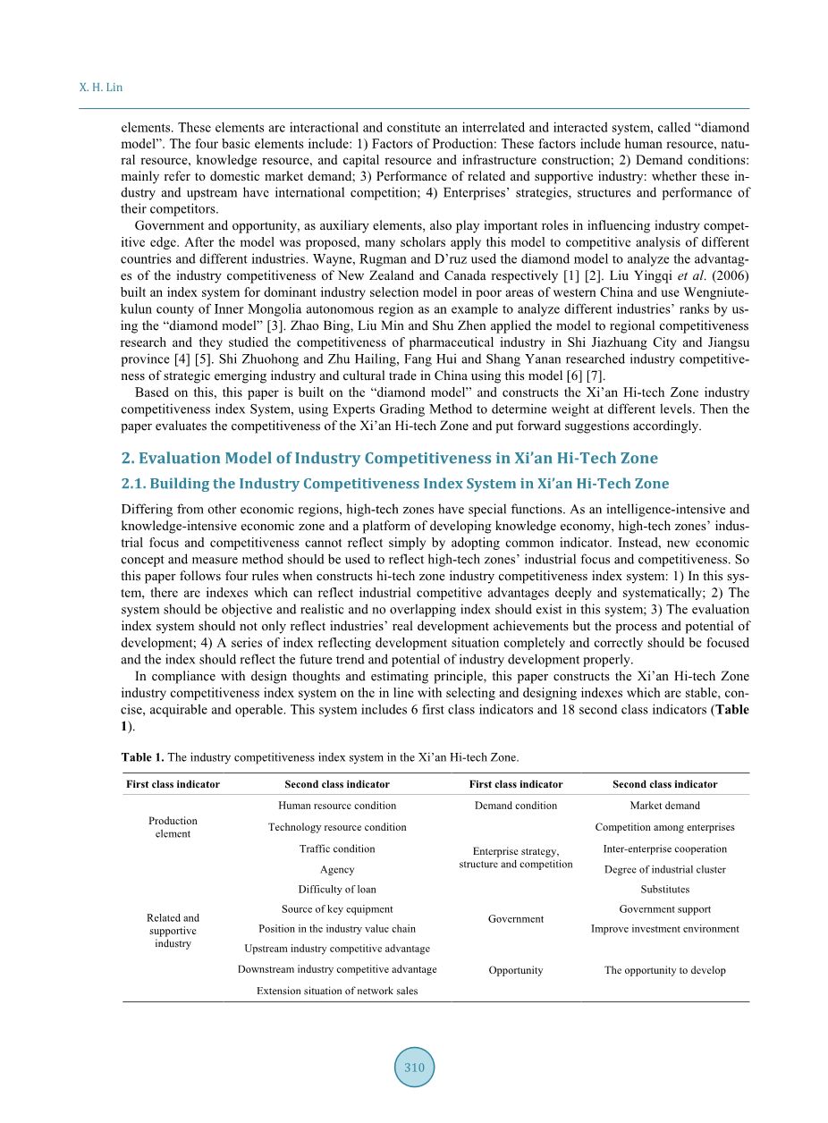西安高新技术产业开发区(西安高新区)是1993年3月国务院批准的首个国家级高新技术产业开发区,为高新技术产业发展做出了重要贡献,高科技产业和产业结构的优化升级。 2014年,西安高新区首次总收入首次突破万亿元(11070亿元人民币),居全国高新区第三位。其领先的经济指标在十年内保持30%的增长。在西安高新区,有一家企业的营业收入超过1000亿,17家营业收入100亿,26家营业额50亿,83家企业营业收入超过10亿。尽管发展了20多年的西安高新区已经摸索成功,但与其他高新区相比,提升产业竞争力或创造产业特色仍有很大空间。因此,在竞争力分析的基础上,对西安高新区产业竞争力进行测试分析是一个有价值的研究课题,并提出了产业发展思路。