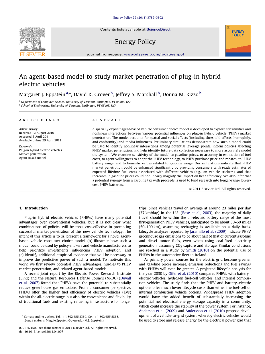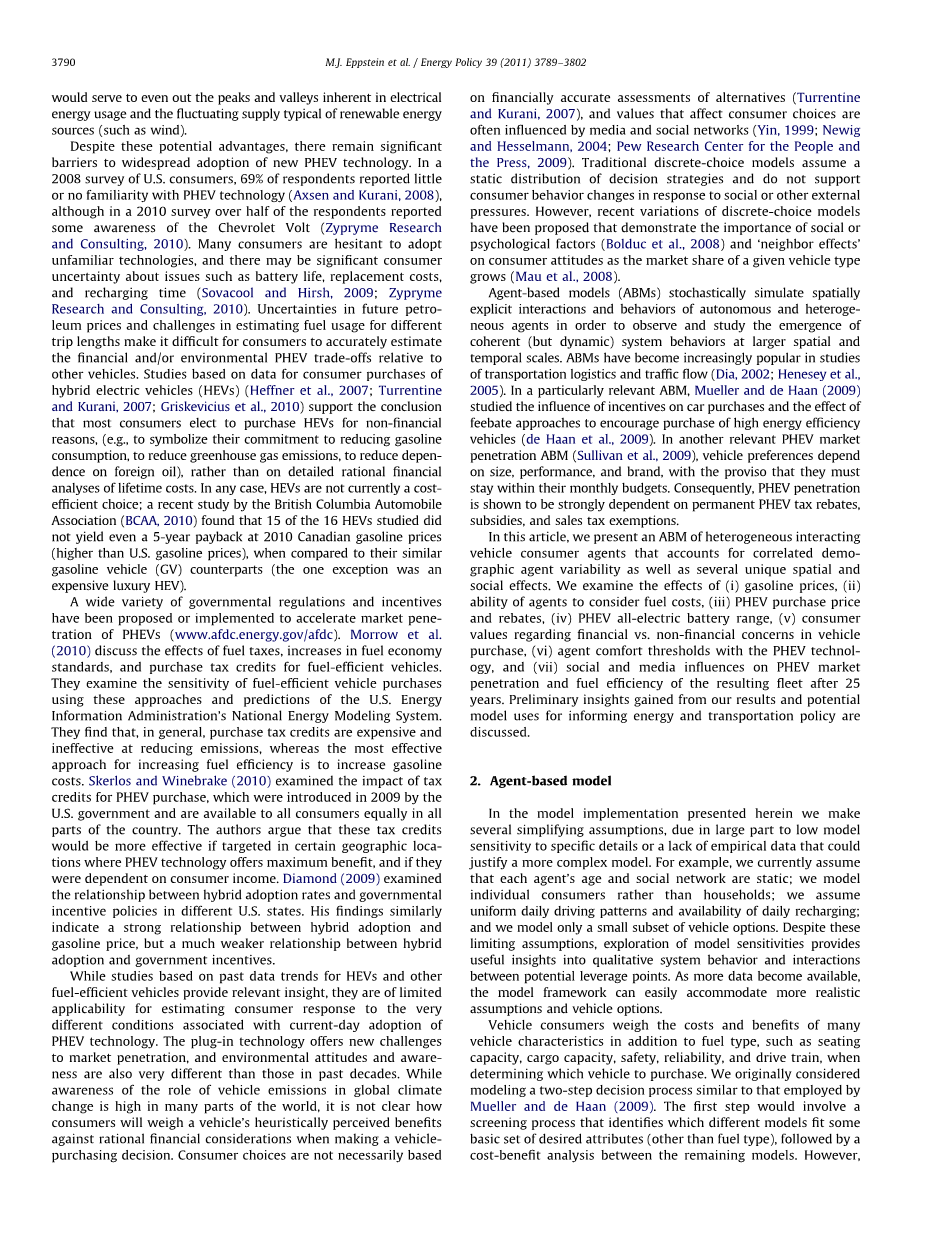 基于代理模型 (ABMs) 随机模拟空间直观交互和行为的自主和异构的代理商,以观察和研究在更大的空间和时间尺度相干 (但动态) 系统行为的出现。ABMs 已成为运输物流和交通研究中越来越受欢迎的模型(Dia,2002年; Henesey et al 2005)。特别是有关弹道导弹,在米勒和 de Haan (2009 年) 研究了对购买汽车的动机的影响和效果的综合税制的办法,以鼓励购买高能源效率汽车 (de Haan et al.2009年)。在另一个有关 PHEV 市场渗透研究中 (沙利文 et al.2009年),车辆首选项取决于大小、 性能和品牌,附带条件是他们必须留在他们每月的预算范围内。因此,PHEV 渗透表明要强烈地依赖于永久 PHEV 退税、 补贴和销售免税。