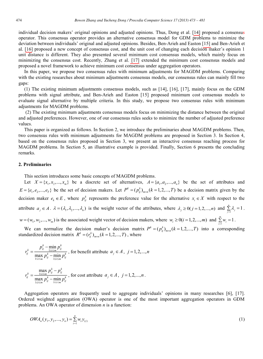 - 现有的最小调整共识模型,如[14],[16],[17],主要关注信号属性的GDM问题,Ben-Arieh和Easton [15]提出了最小成本共识模型来评估由多个标准替代信号。 在这项研究中,我们提出了关于MAGDM问题最小调的整两个共识规则。
