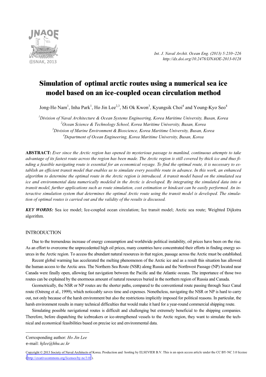 用基于冰耦合环流方法的海冰数值模型模拟北极最优航线外文翻译资料