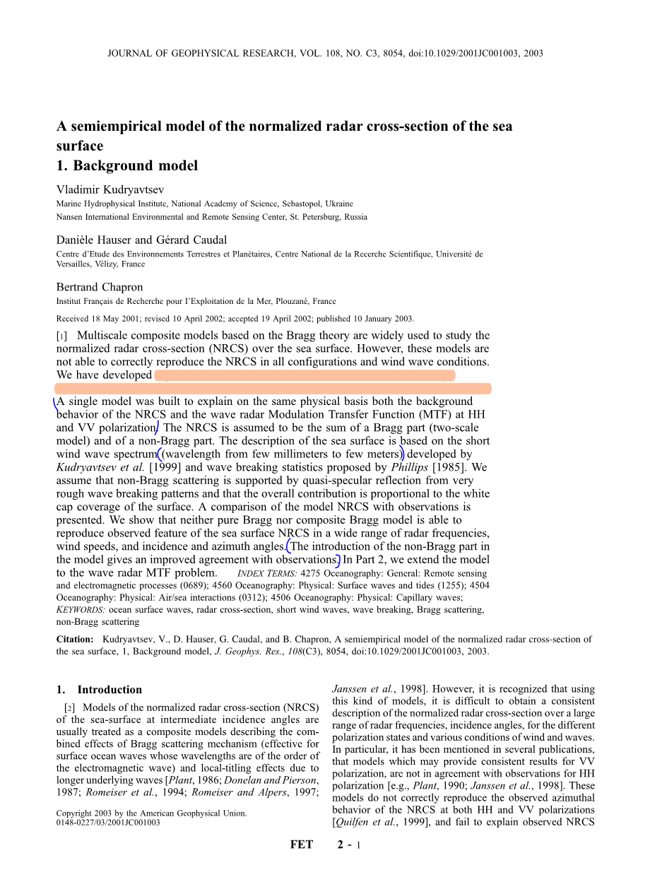 V. N. Kudryavtsev,Danie`le Hauser and Geacute;rard Caudal,Bertrand Chapron