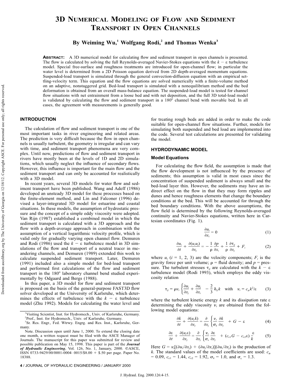 作者:Weiming Wu, Wolfgang Rodi, and Thomas Wenka