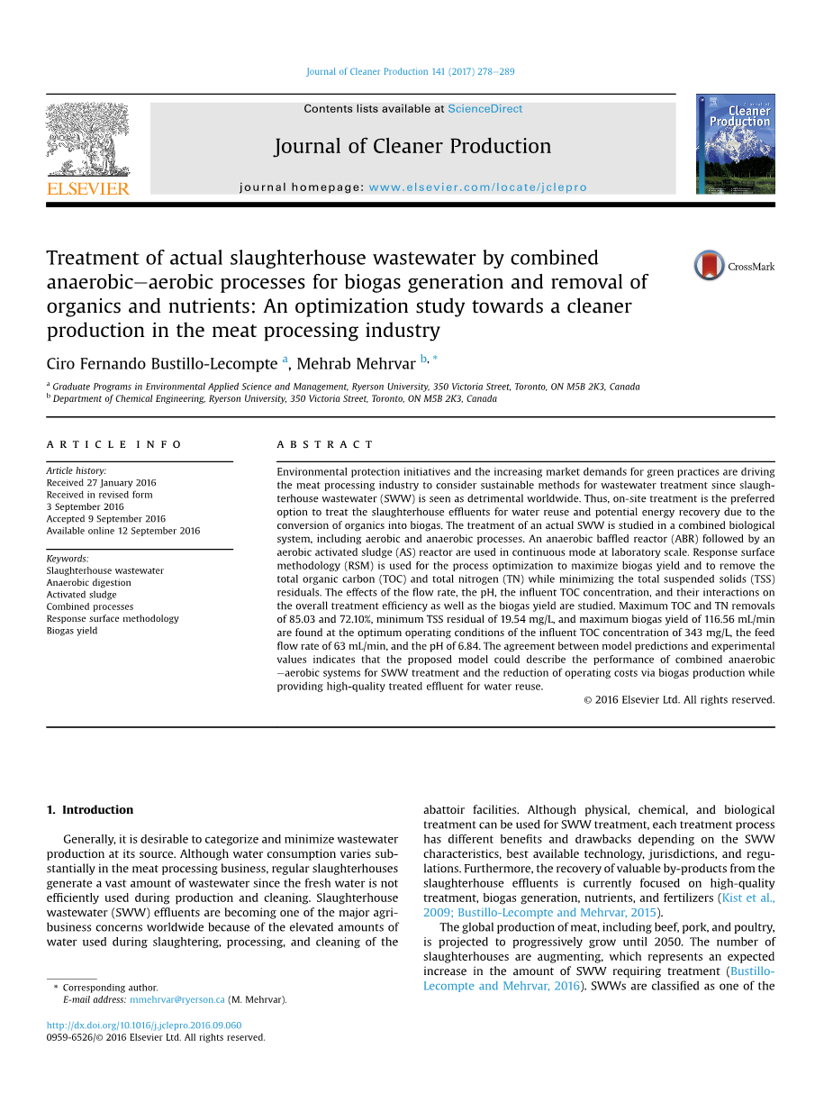 厌氧—好氧联合工艺处理实际屠宰废水中产生的沼气以及去除有机物和营养物质:肉类加工业清洁生产的优化研究