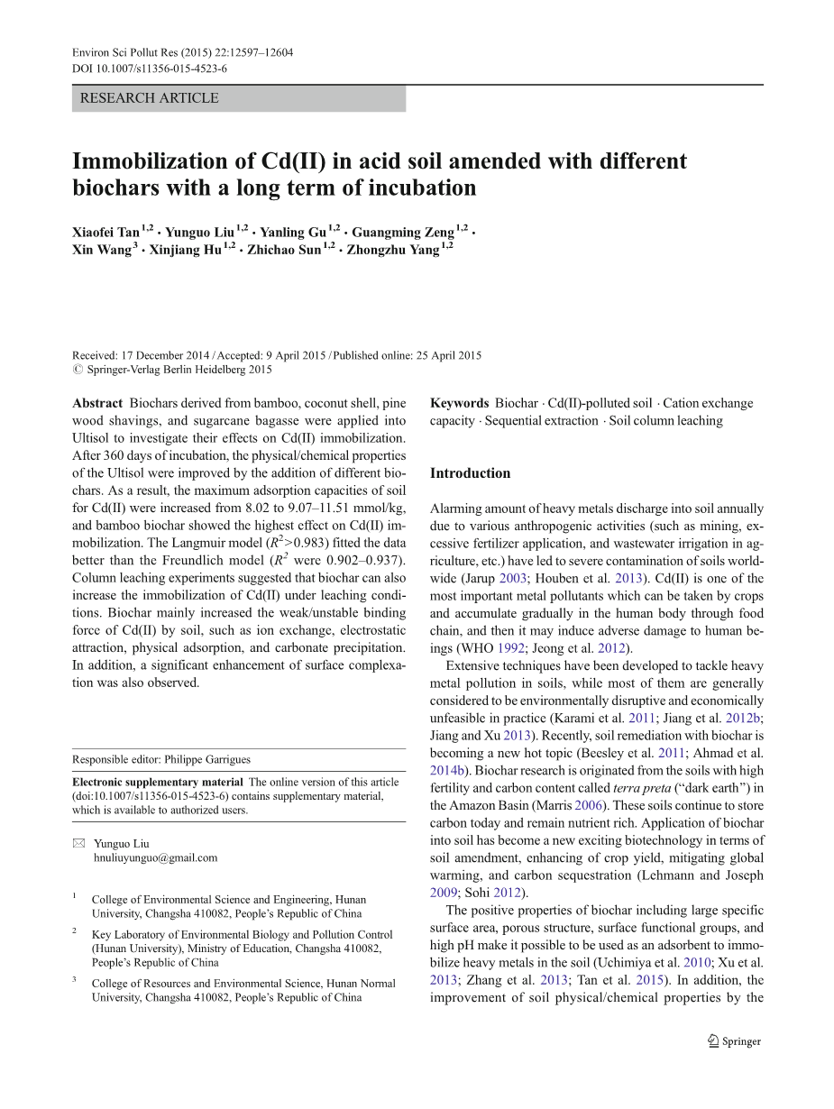 原作者姓名: Xiaofei Tan1,2 amp; Yunguo Liu1,2 amp; Yanling Gu1,2 amp; Guangming Zeng1,2 amp;Xin Wang3 amp; Xinjiang Hu1,2 amp; Zhichao Sun1,2 amp; Zhongzhu Yang1,2