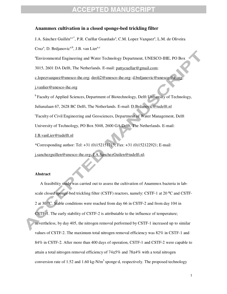 J.A. Saacute;nchez Guilleacute;na,c,*, P.R. Cueacute;llar Guardadoa, C.M. Lopez Vazquez, L.M. de Oliveira Cruza, D. Brdjanovica,b, J.B. van Liera,c
