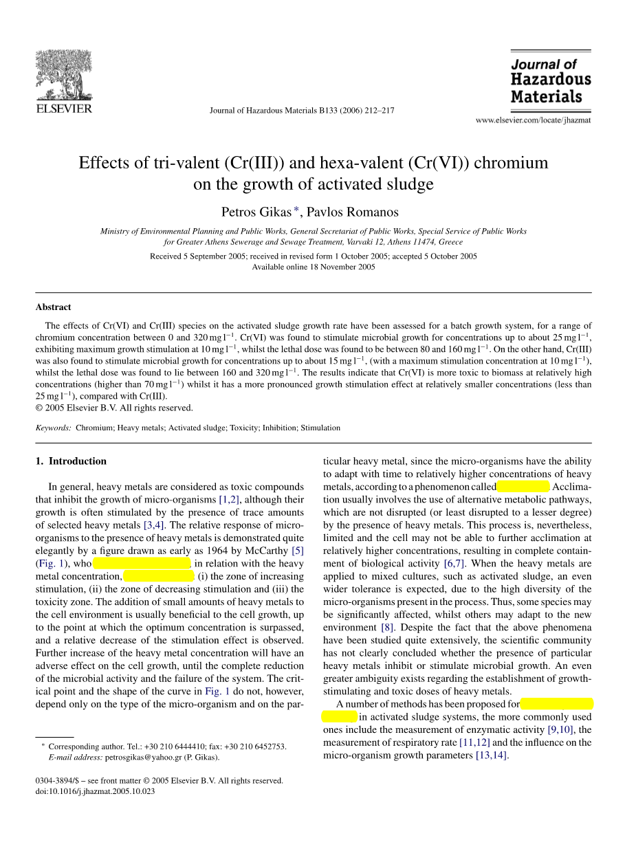 关键词:铬;重金属;活性污泥;毒性;抑制;刺激