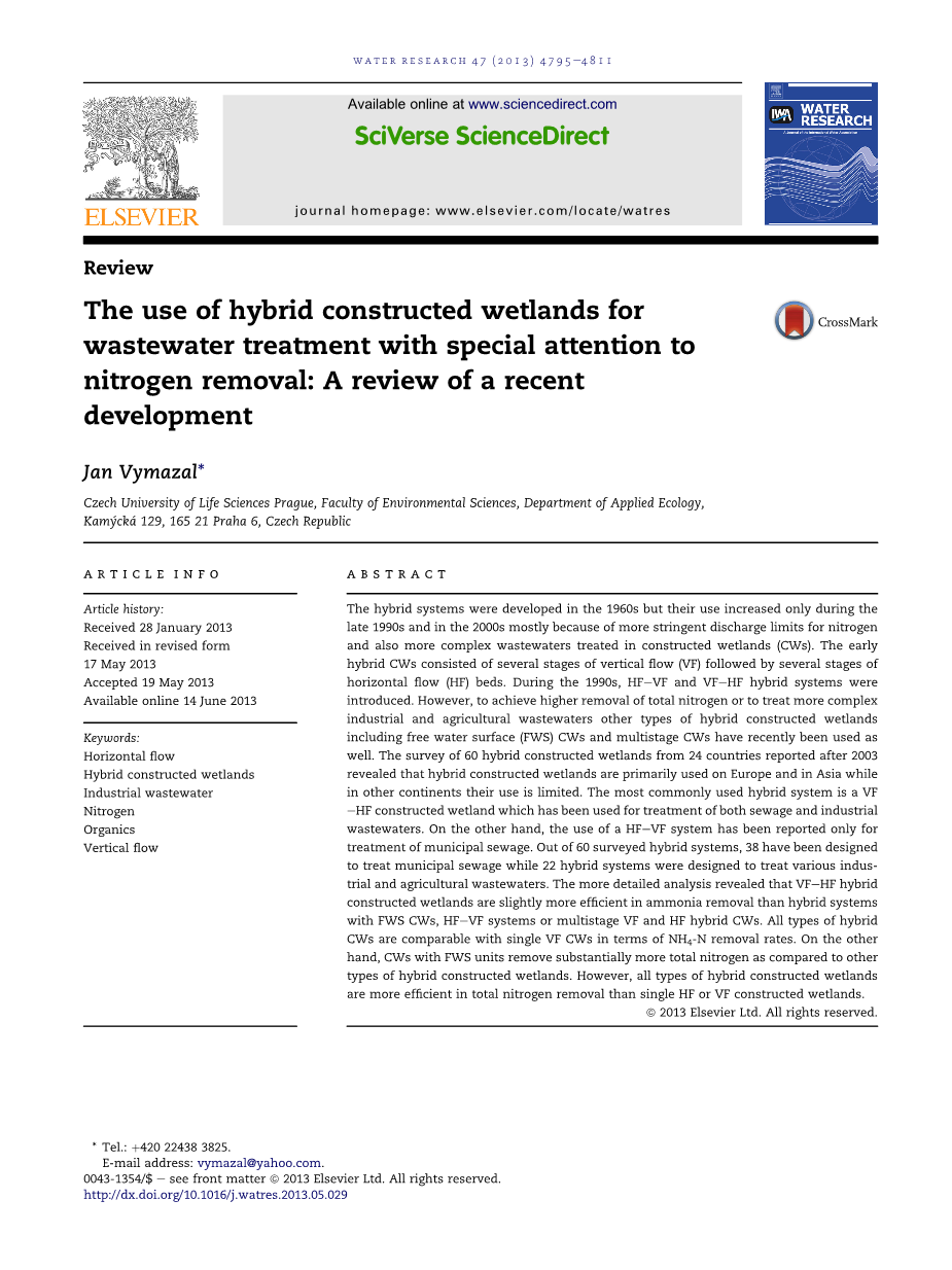 关键词:水平流、混合人工湿地、工业废水、氮、有机物、垂直流