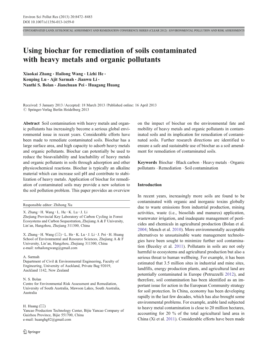 Xiaokai Zhang amp; Hailong Wang amp; Lizhi He amp;Kouping Lu amp; Ajit Sarmahamp; Jianwu Li amp;Nanthi S. Bolan amp; Jianchuan Pei amp; Huagang Huang