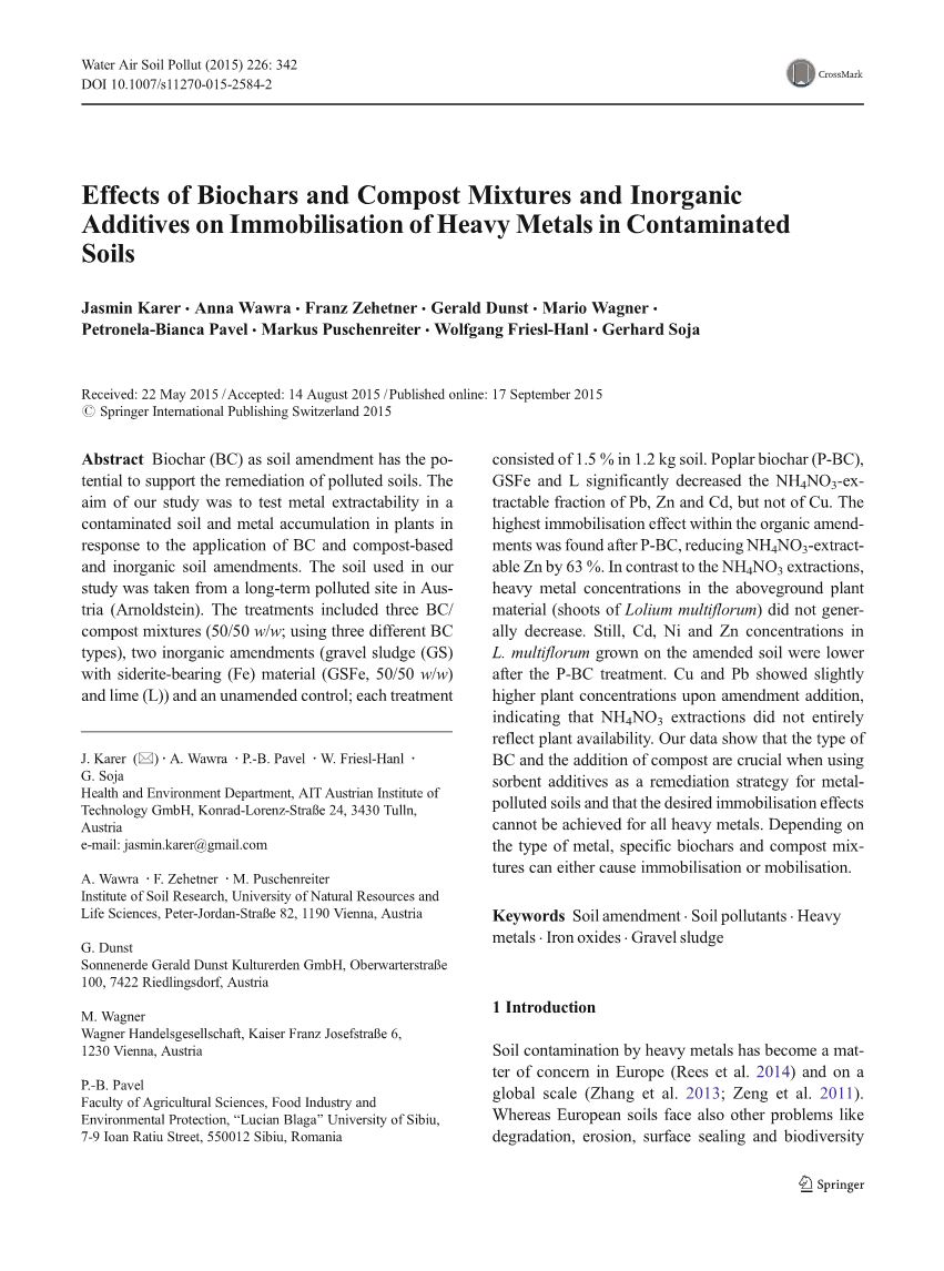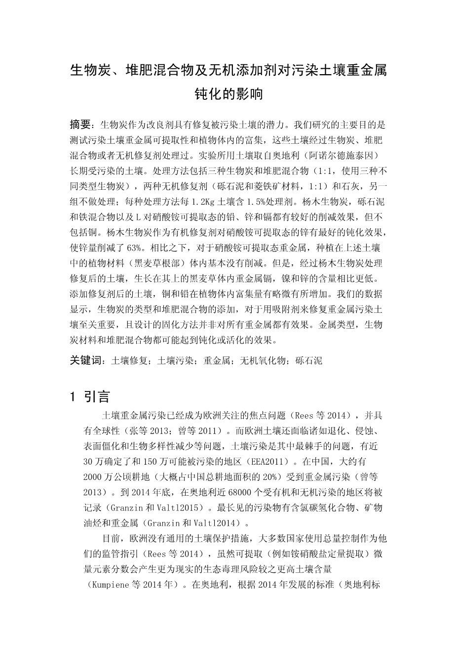 生物炭、堆肥混合物及无机添加剂对污染土壤重金属 钝化的影响外文翻译资料