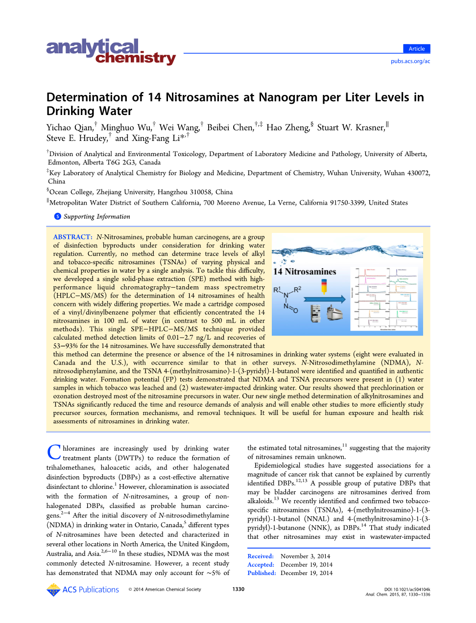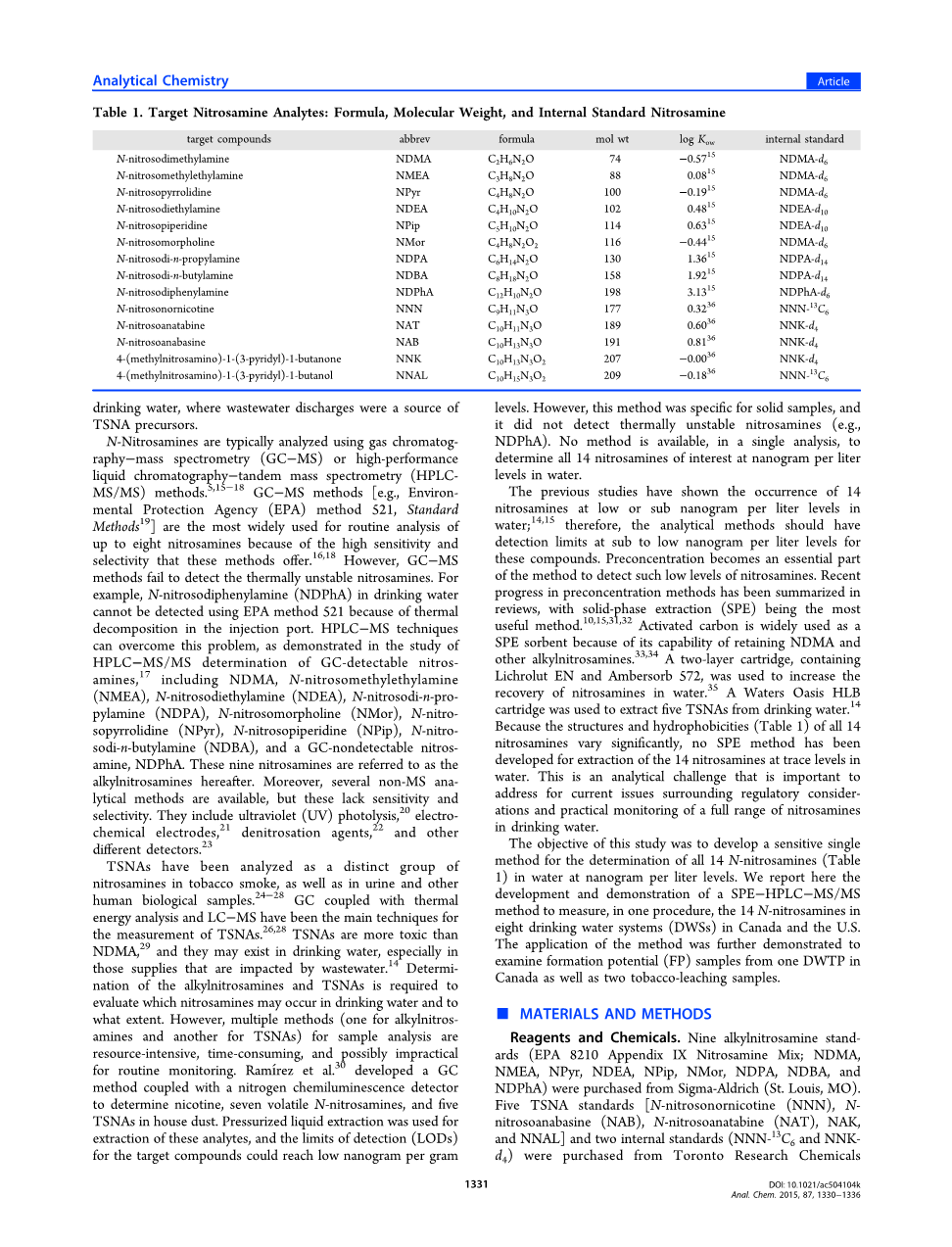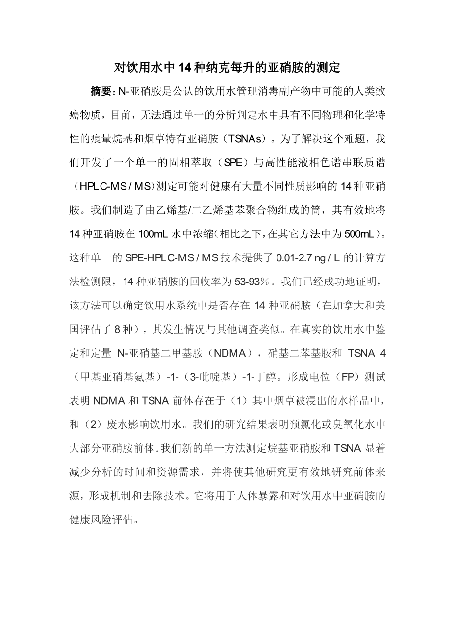 对饮用水中14种纳克每升的亚硝胺的测定外文翻译资料