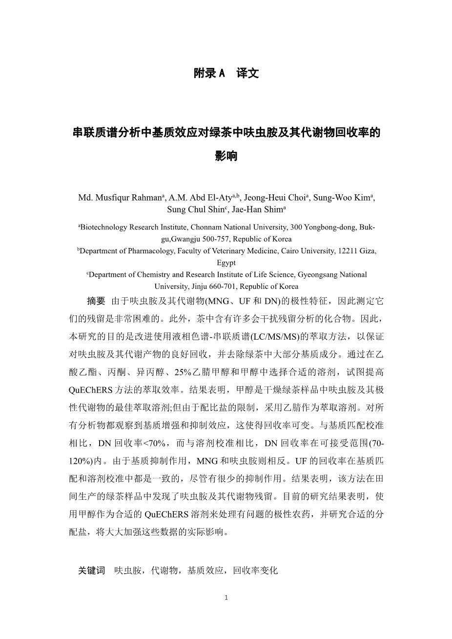 串联质谱分析中基质效应对绿茶中呋虫胺及其代谢物回收率的影响外文翻译资料 2023-07-26 10:06:47 英语原文共 12 页,剩余内容已隐藏,支付完成后下载完整资料 英语译文共 26 页,剩余内容已隐藏,支付完成后下载完整资料 资料编号:[605107],资料为PDF文档或Word文档,PDF文档可免费转换为Word 您需要先支付 30元 才能查看全部内容!立即支付 发小红书推广免费获取该资料资格。点击链接进入获取推广文案即可: Ai一键组稿 | 降AI率 | 降重复率 | 论文一键排版 PREVIOUS NEXT 您可能感兴趣的文章 300 m3/d香料废水处理工程设计开题报告 某啤酒生产企业1200吨/天啤酒废水处理站设计开题报告 竹炭对水中铅和镉双组份的吸附性能研究开题报告 典型昆虫生长调节剂对的Daphnia magna毒性效应影响研究开题报告 2014年至2017年贵州省贵阳市空气质量统计分析开题报告 钙基生物炭复合材料的水分和养分保持性能研究文献综述 关于壳聚糖小球吸附VOC气体的研究开题报告 镇江市垃圾填埋场扩建工艺设计开题报告 荆州新堤主城区排水工程初步设计开题报告 芘污染土壤机械化学修复研究文献综述