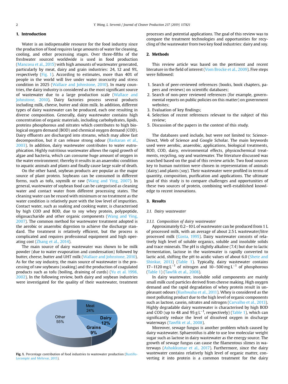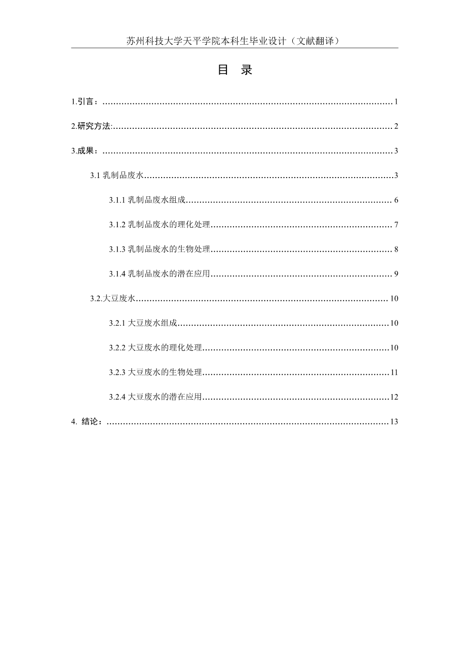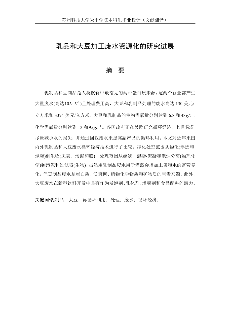 乳品和大豆加工废水资源化的研究进展外文翻译资料
