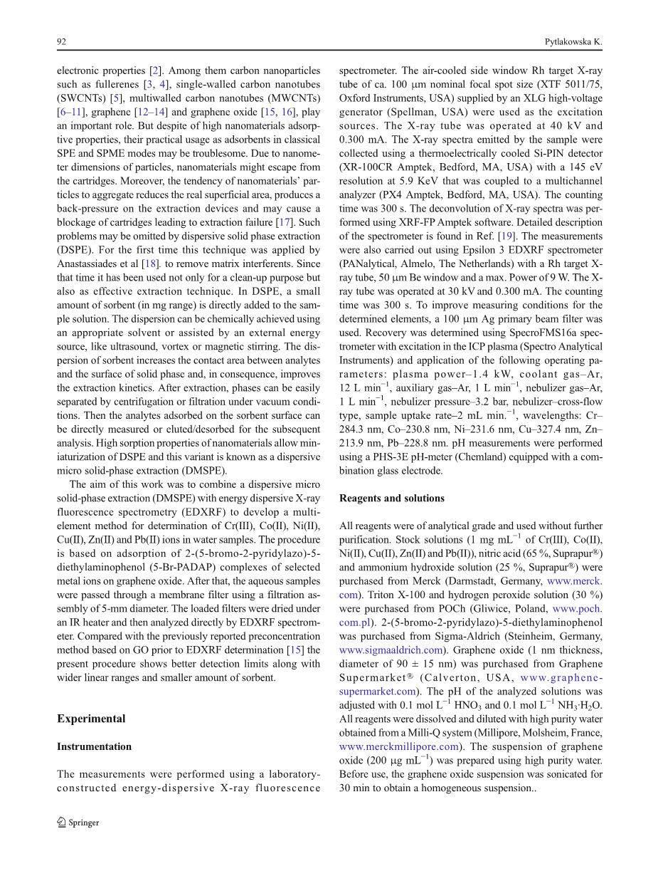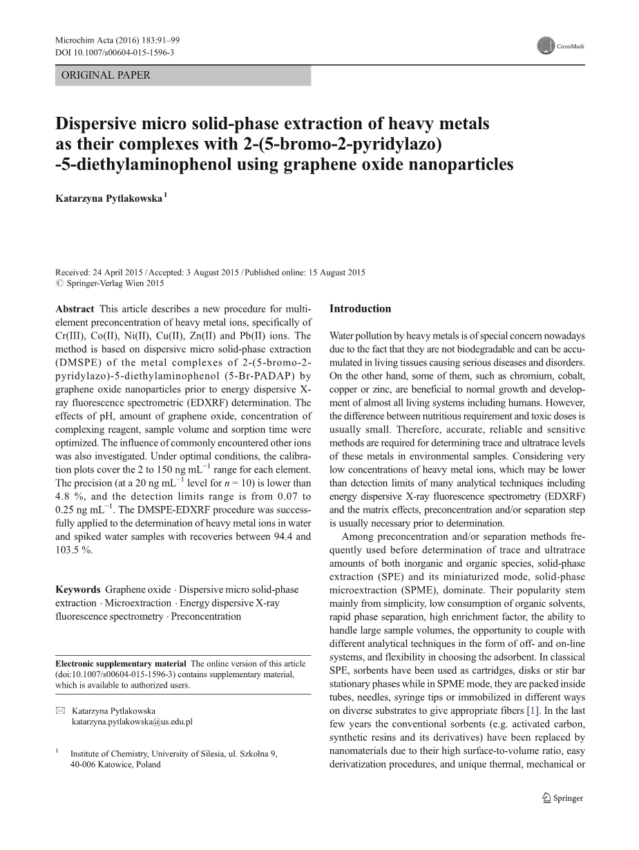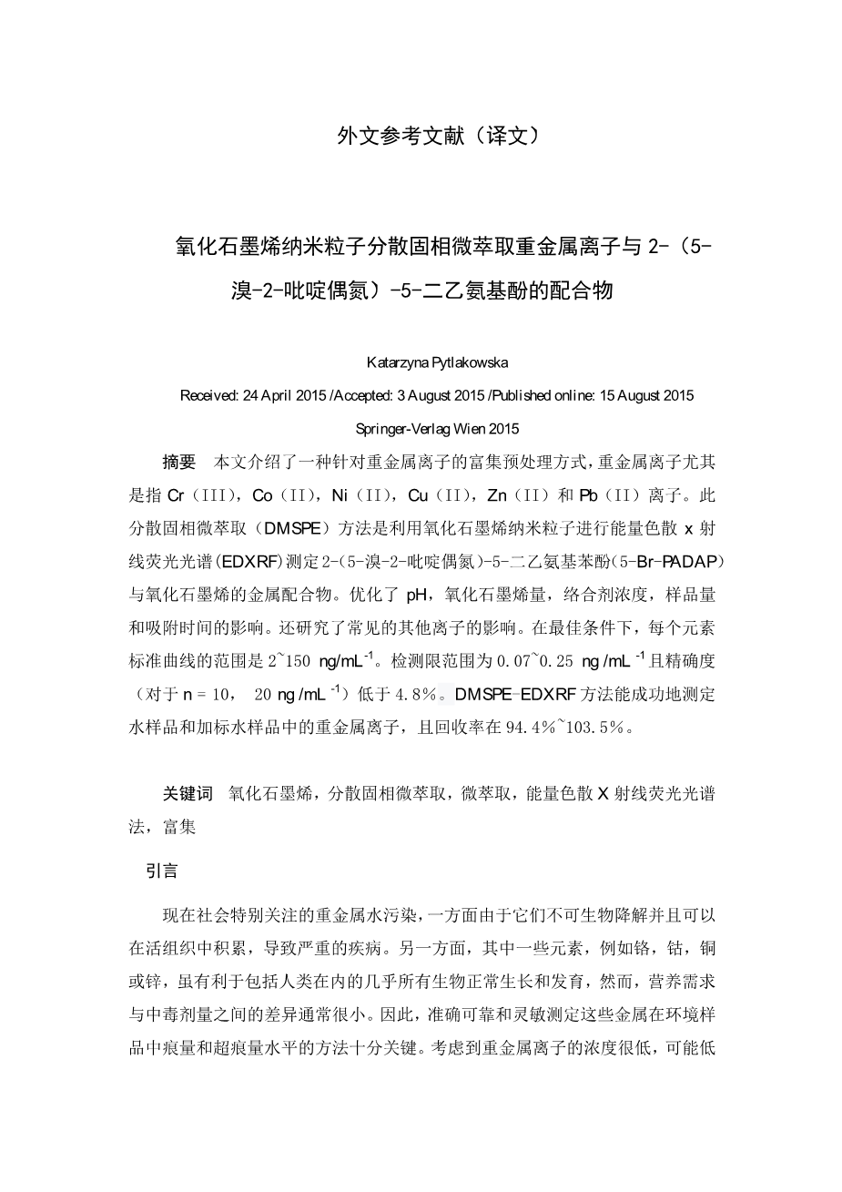 氧化石墨烯纳米粒子分散固相微萃取重金属离子与2-(5-溴-2-吡啶偶氮)-5-二乙氨基酚的配合物外文翻译资料