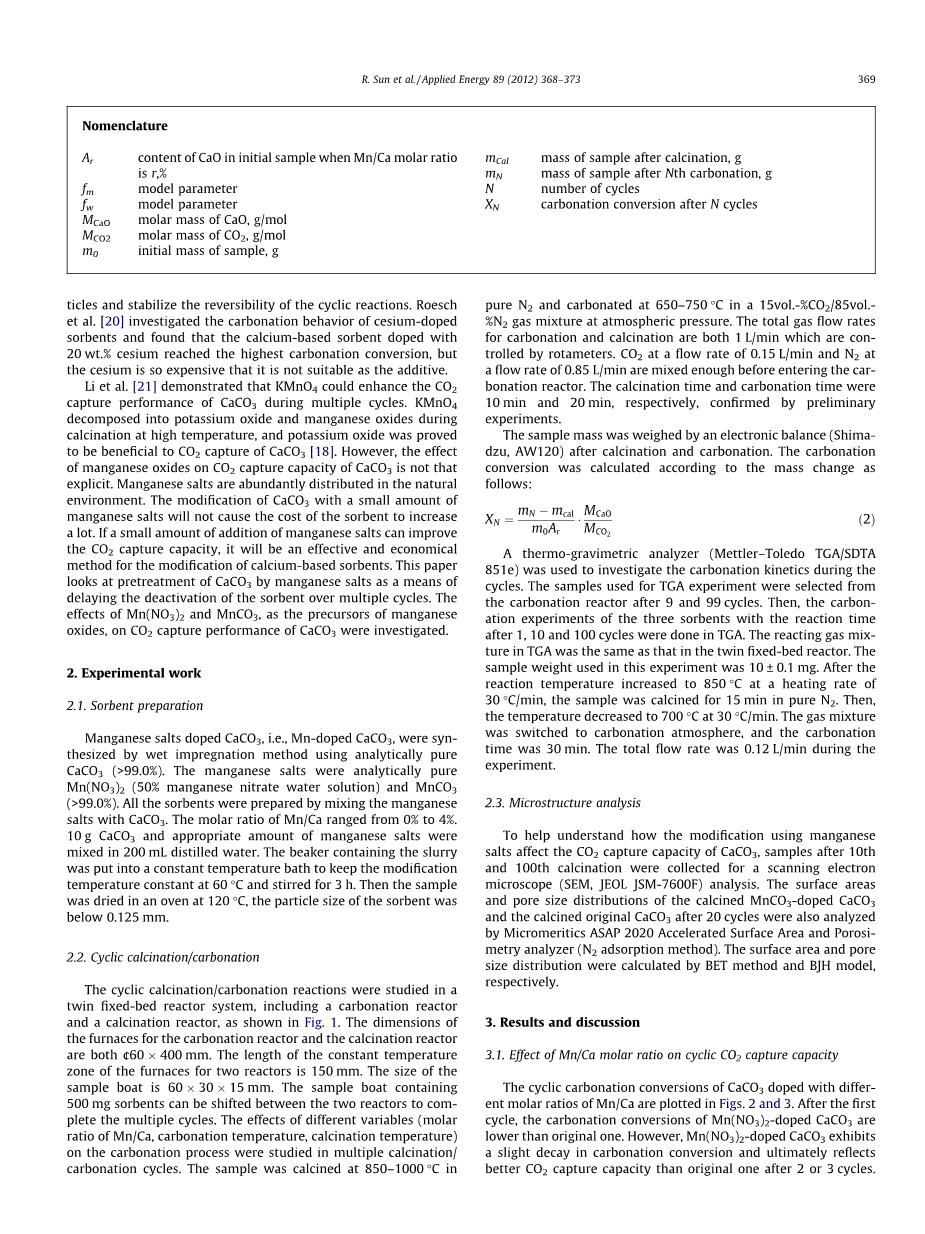 3.1.Mn / Ca摩尔比对CO2循环捕获能力的影响
