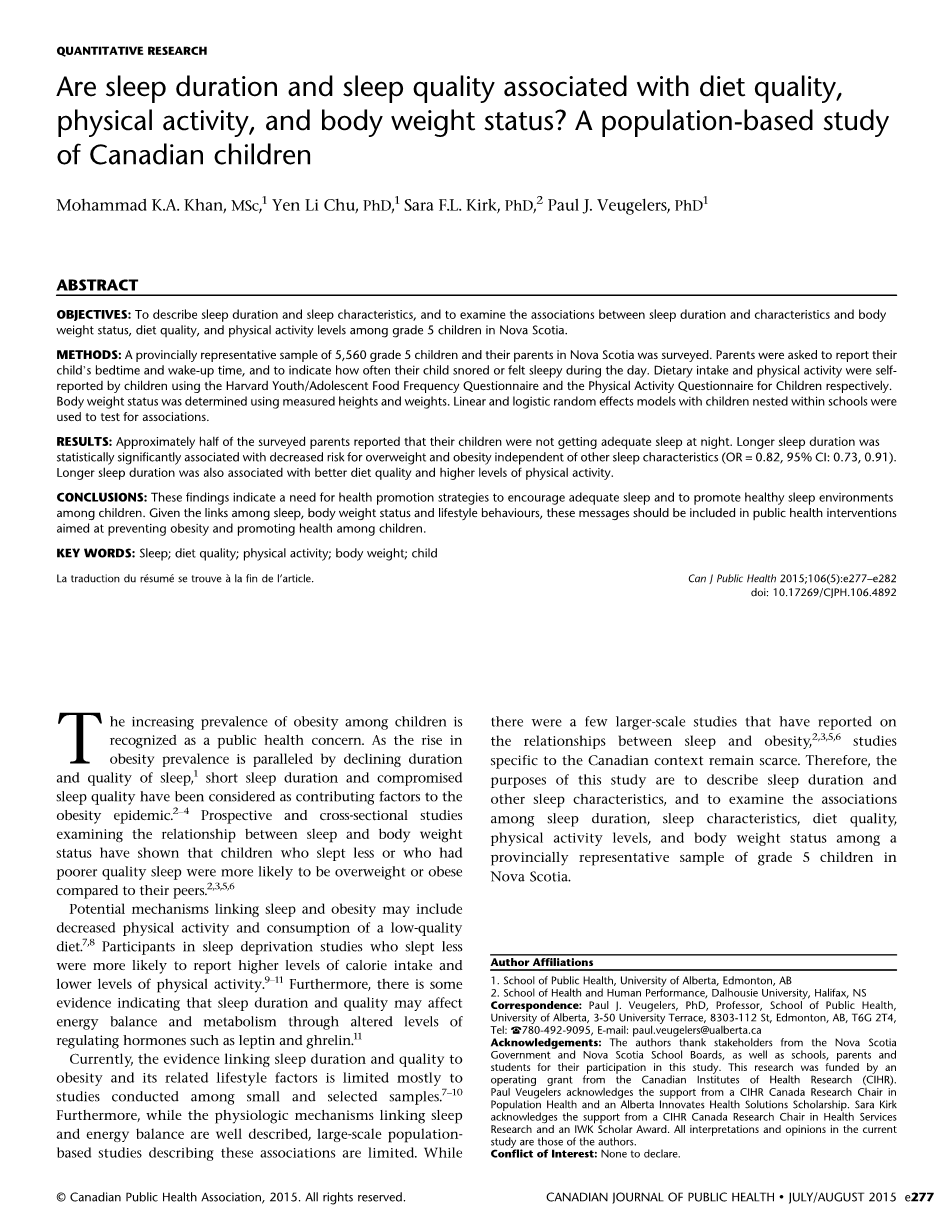 Mohammad K.A. Khan, MSc,1 Yen Li Chu, PhD,1 Sara F.L. Kirk, PhD,2 Paul J. Veugelers, PhD1