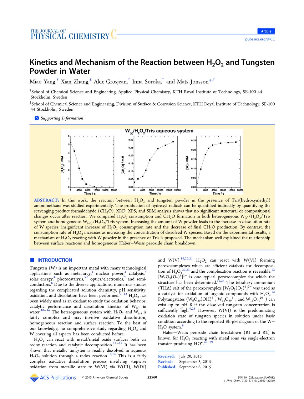 题目:H2O2和钨粉在水相中的反应动力学和反应机理研究