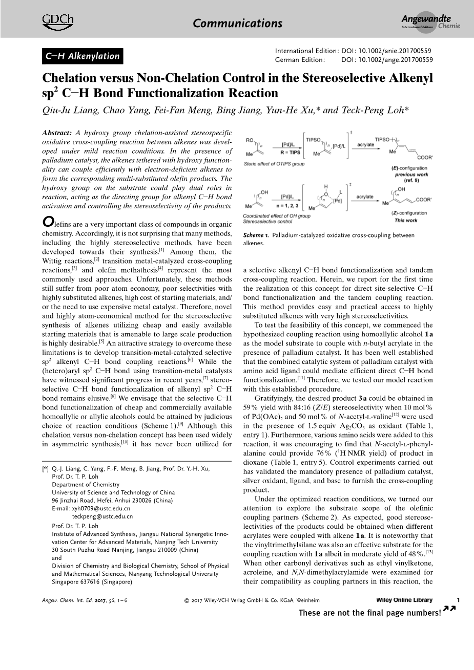立体选择性烯基sp2 C-H键功能化反应中的螯合与非螯合控制