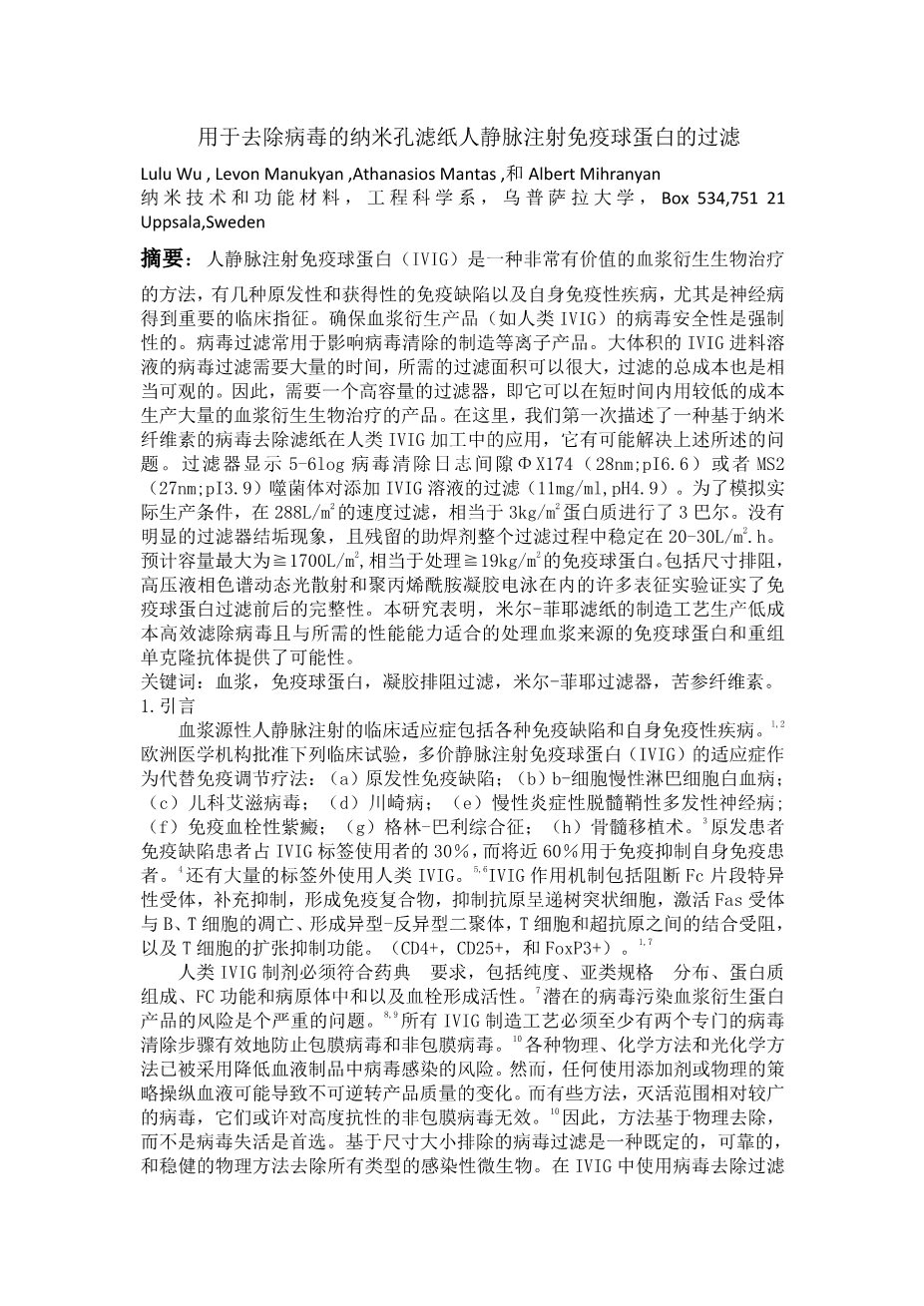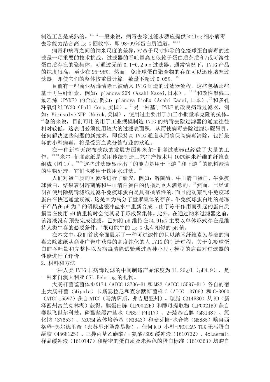 用于去除病毒的纳米孔滤纸人静脉注射免疫球蛋白的过滤外文翻译资料