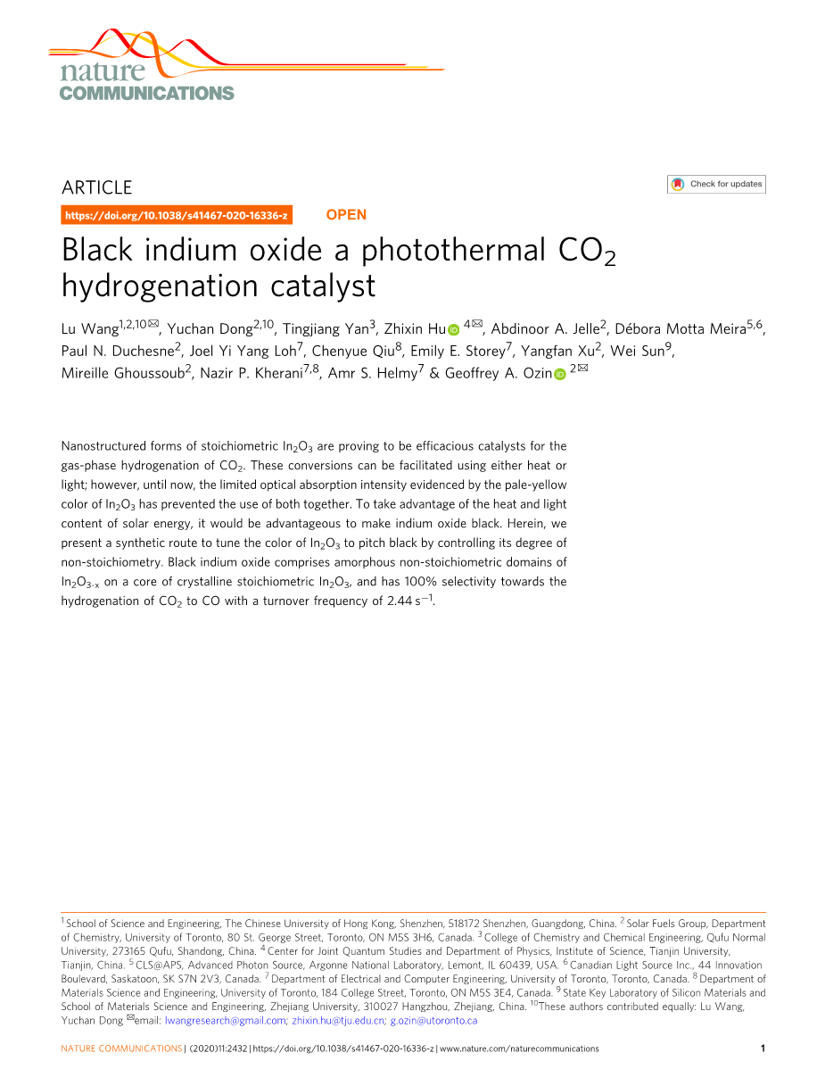- 黑色氧化铟——一种光热CO2加氢催化剂外文翻译资料