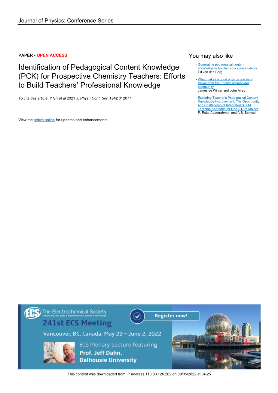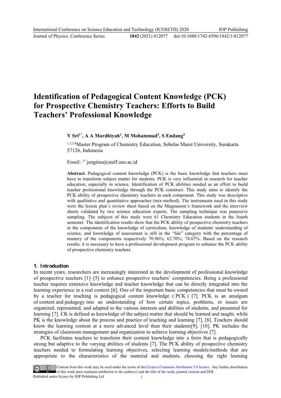 近年来,研究人员越来越关注未来教师的专业知识发展,以提高未来教师的能力。作为一名专业教师,需要广泛的知识和教学知识,可以直接融入到真实环境中的学习经验中。教师在教学中必须拥有的重要基本能力之一是学科教学知识(PCK)。PCK是内容和教学法的结合体,是对某些主题、问题或题目如何被组织、表现和适应学生的各种兴趣和能力,并为学习而呈现的理解。CK被定义为关于应该教与学的学科知识,而PK是关于教学过程和实践的知识。教师对学习内容的了解应该比学生更深入。PK包括实现学习目标的课堂管理和组织策略。