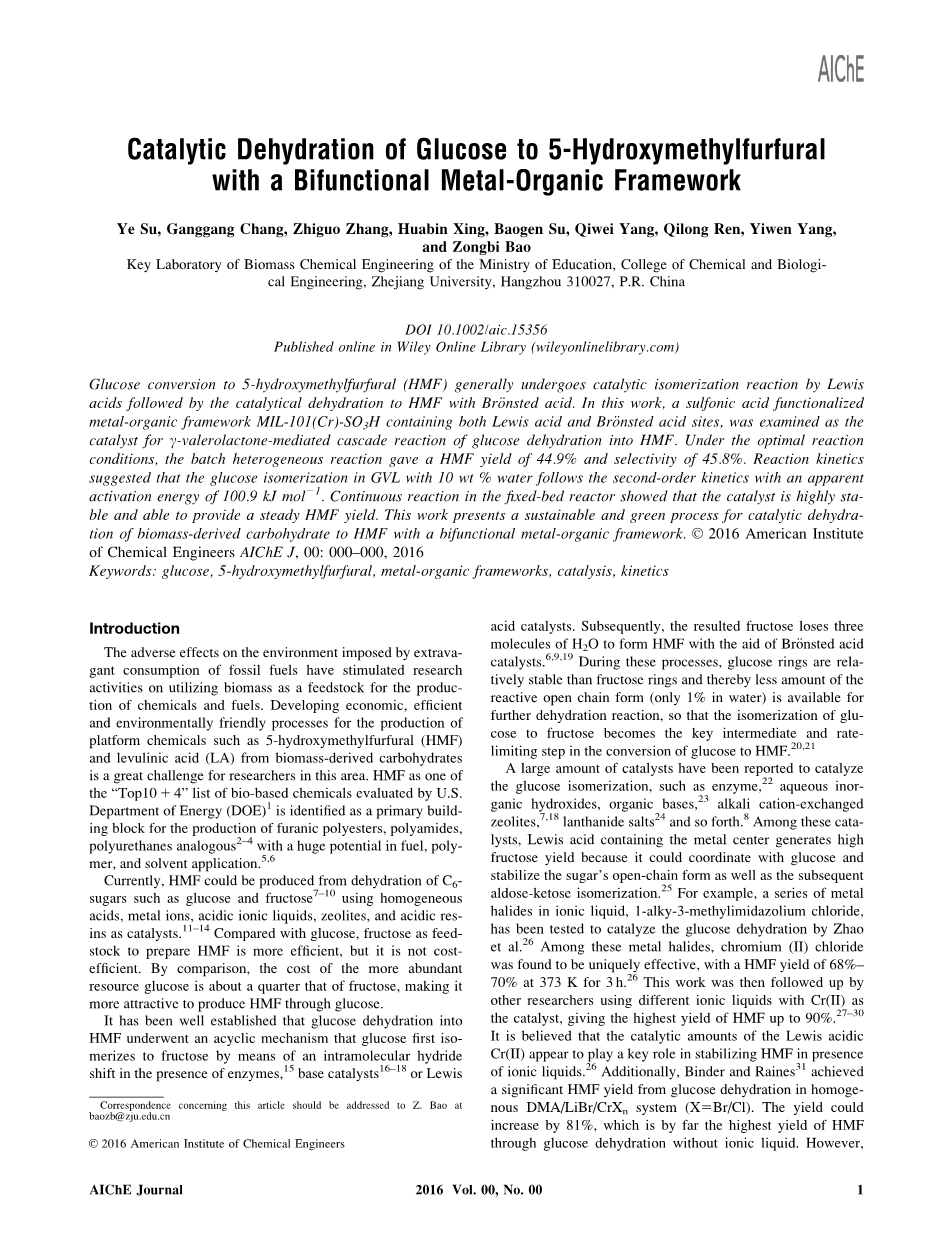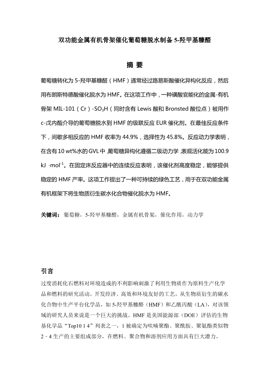 双功能金属有机骨架催化脱水制备5甲醒外文翻译资料