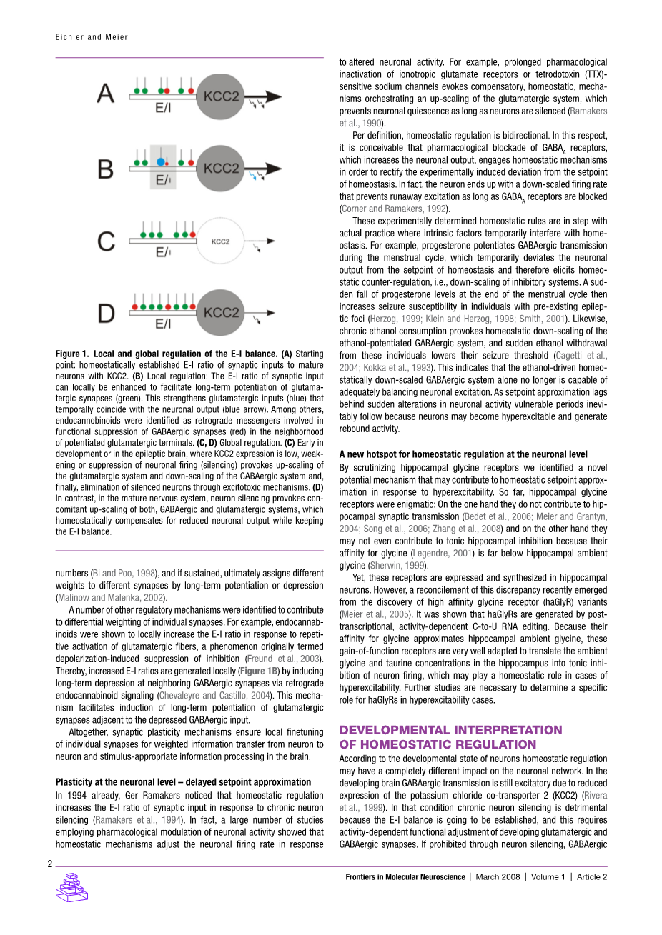 根据神经元的稳态调节的发育状态可能对神经元网络的影响完全不同。发育中的大脑GABAergic传输仍然是兴奋性的氯化钾协同转运蛋白2的表达减少(KCC2)(Rivera等人,1999)。在这种情况下慢性神经元沉默是有害的,因为E-I平衡将被建立,而这需要发展谷氨酸和活性依赖的功能调整GABAergic突触。如果禁止通过GABAergic突触是神经元沉默,缩小根据提出的默认途径消除“不同步”的GABAergic突触(Tao和Poo,2005),和神经元出现不太合在发展网络最终将被淘汰(Eichler等人,未出版)。这个规则也适用于癫痫病患者的大脑神经元活动减少和发生(Sloviter 等人, 2006),这是采取的早期发育状态的表达改变和CLminus;挤压相关的减值(Hartmann等人, 2001; Rivera等人,2002; Wake等人, 2007)。相反,在成人的神经组织,引起神经元沉默相伴的谷氨酸能突触GABA调节,维持突触输入的E-I比(burrone 等人,2002)。虽然夸张的BDNF信号可能参与(Rivera等人, 2004; Singh等人, 2006),负责这些微分稳态调控的分子机械的身份仍有待披露。总之,神经元动态调整响应神经元活性的改变突触输入的E-I比能力肯定是在成人大脑的信息传递一个稳态的基础。然而,在早期的发展以及癫痫病患者的大脑中,神经元活性的改变是不同的解释在稳态机制上。因为在那个时候,生理学上有意义的神经元整合到发展网络还没完全建立。