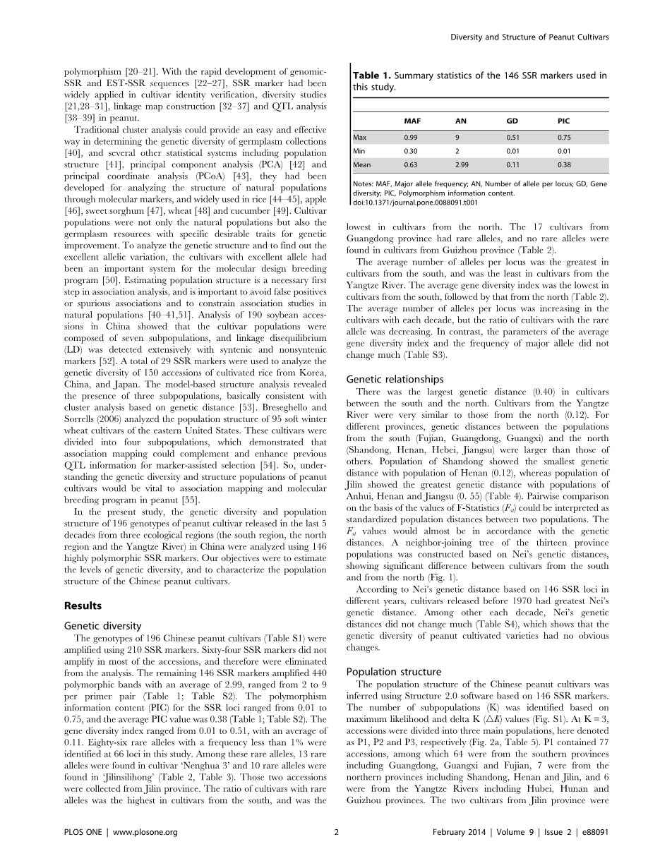 SSR标记在中国主要花生栽培品种(落花生)的遗传多样性和群体结构中的应用