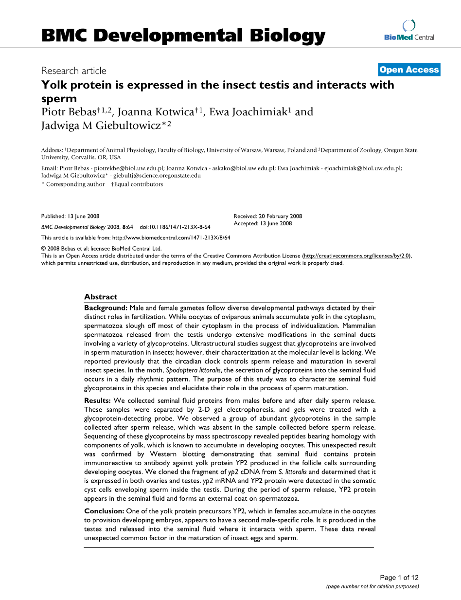 Piotr Bebasdagger;1,2, Joanna Kotwicadagger;1, Ewa Joachimiak1 and Jadwiga M Giebultowicz*2