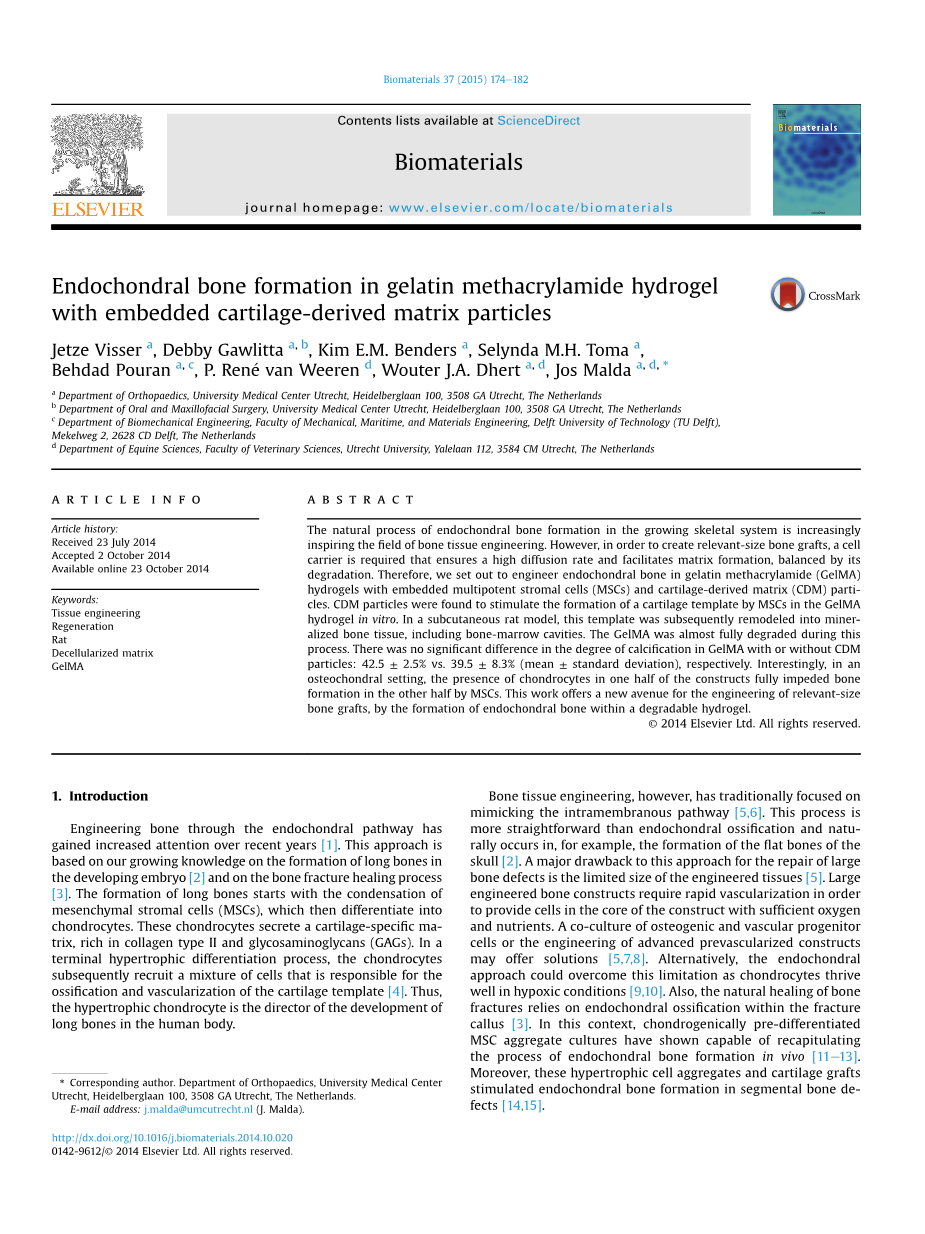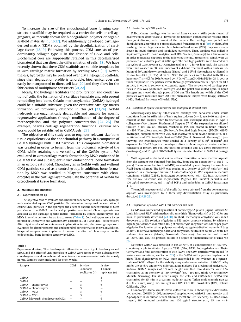 在甲基丙烯酰胺明胶水凝胶内软骨内骨的形成与嵌入软骨衍生基质颗粒