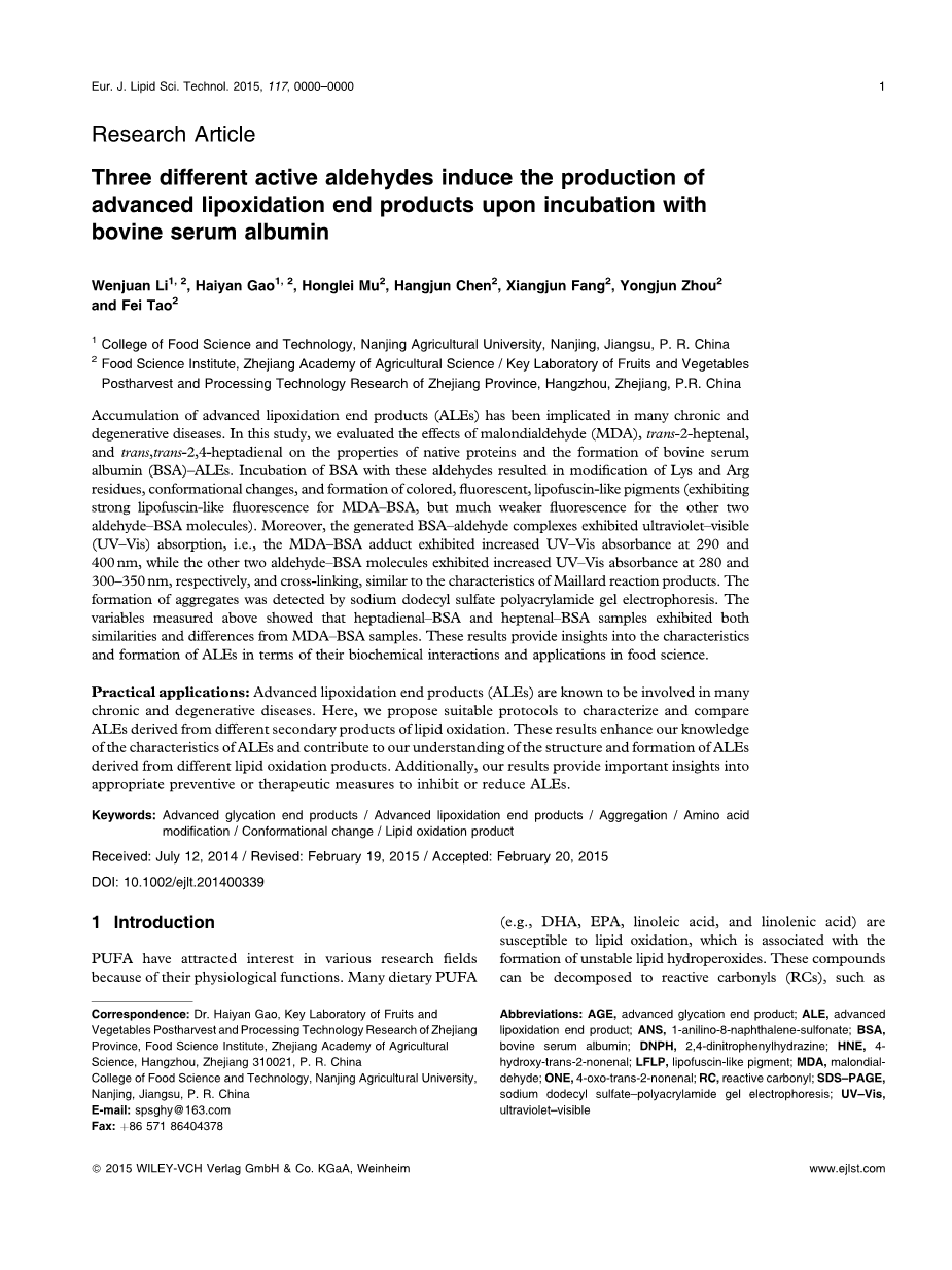 Wenjuan Li1rsquo;2,Haiyan Gao1rsquo;2,Honglei Mu2,Hangjun Chen2,Xiangjun Fang2,Yongjun Zhou2 and Fei Tao2