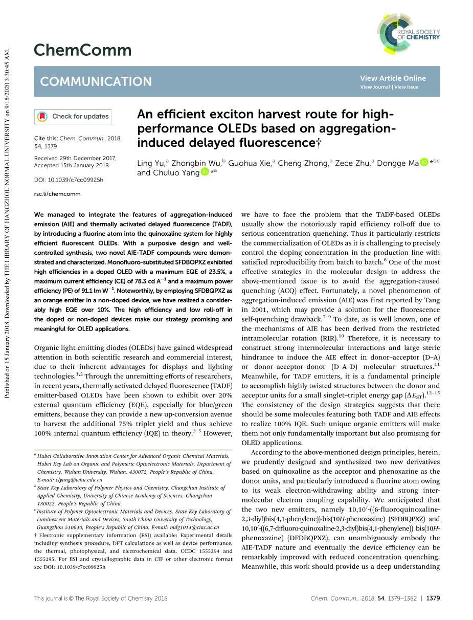 连锁的给体单元分子设计为实现窄发射的深蓝光热活化延迟荧光材料