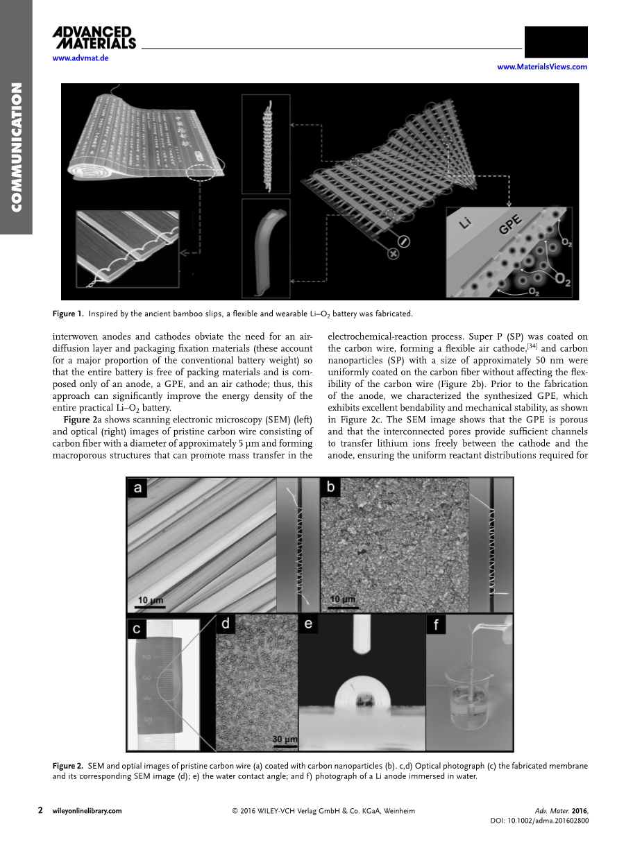 图1. 灵感来源于古代竹简制作的一种柔软耐磨的Li-O2电池