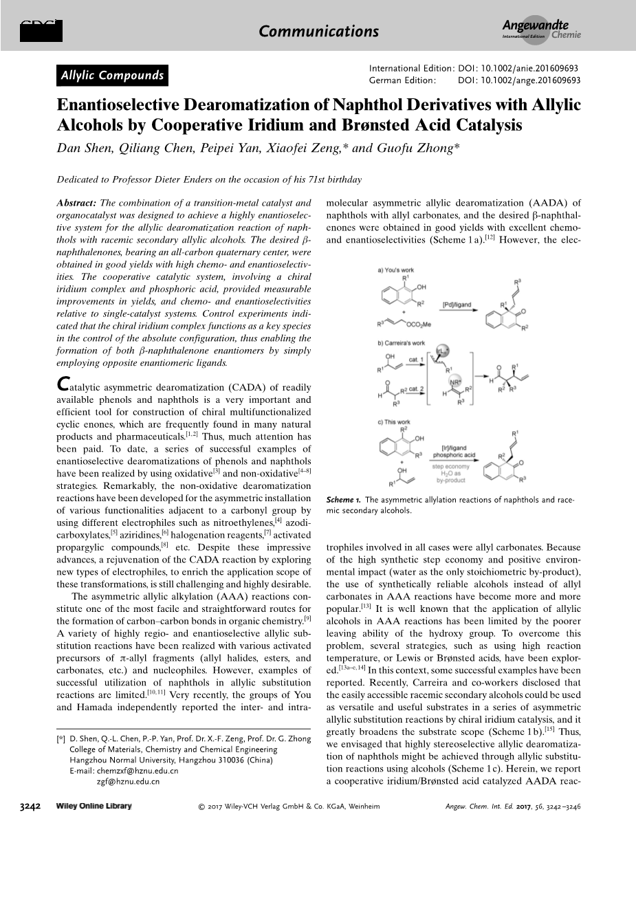 [*] D.Shen, Q.-L.Chen, P-P. Yan, Prof. Dr. X.-F. Zeng, Prof. Dr. G. Zhong College of Materials, Chemistry and Chemical Engineering Hangzhou Normal University, Hangzhou 310036 (China)