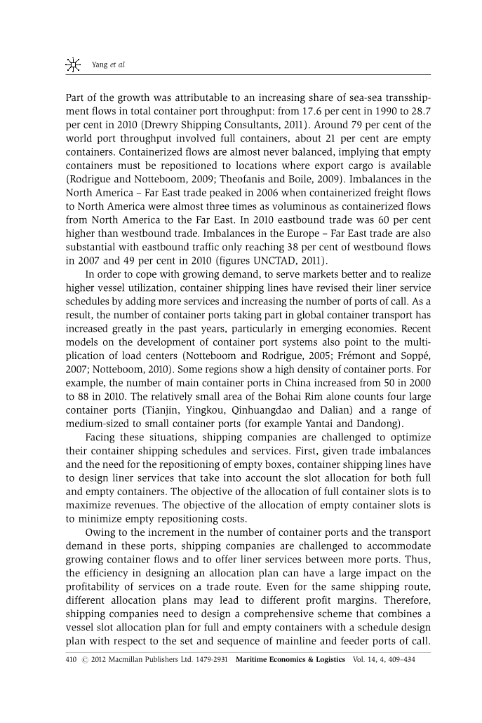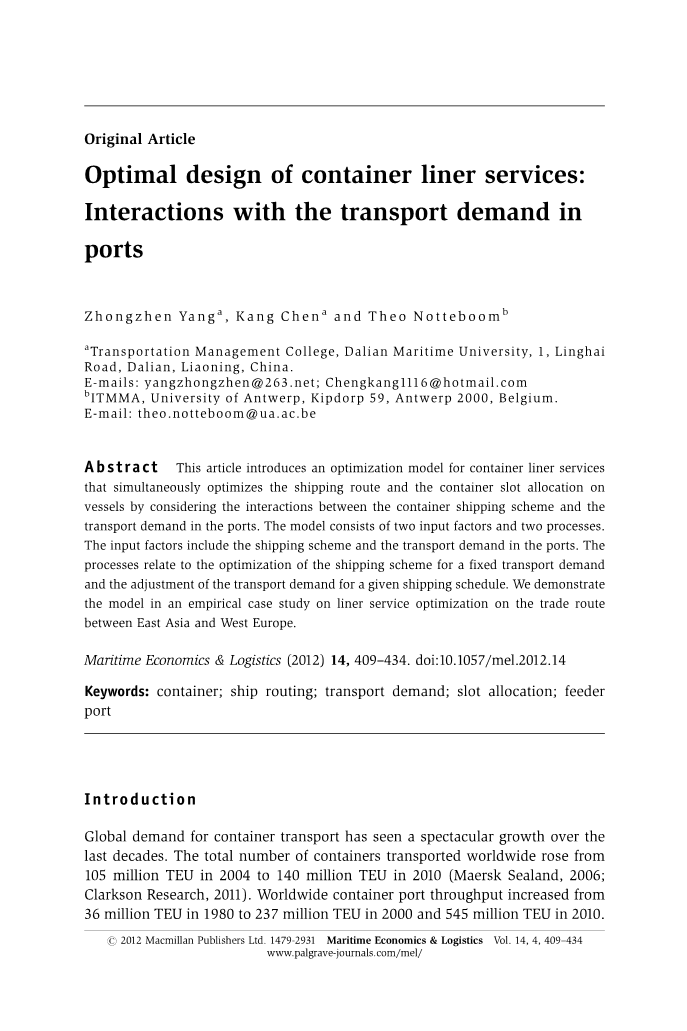 集装箱班轮服务优化设计:与港口运输需求的相互作用外文翻译资料