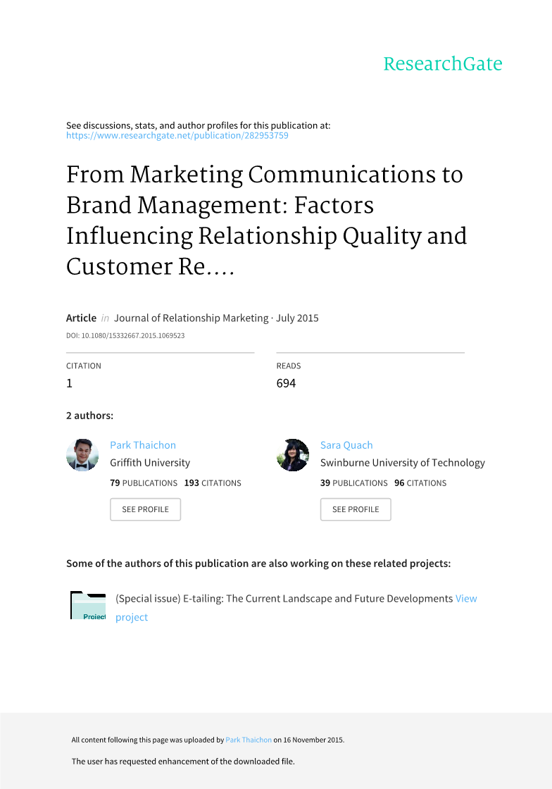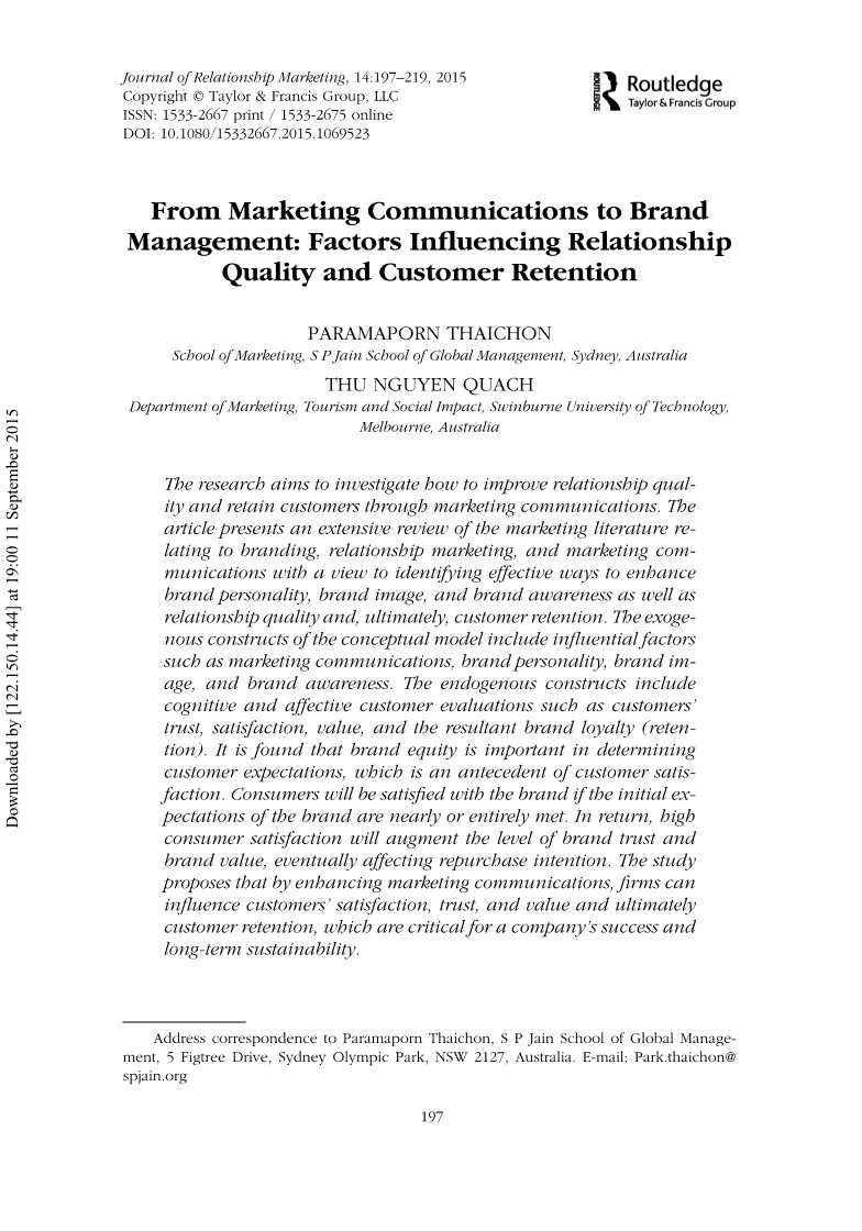题目:From Marketing Communications to Brand Management: Factors Influencing Relationship Quality and Customer Retention