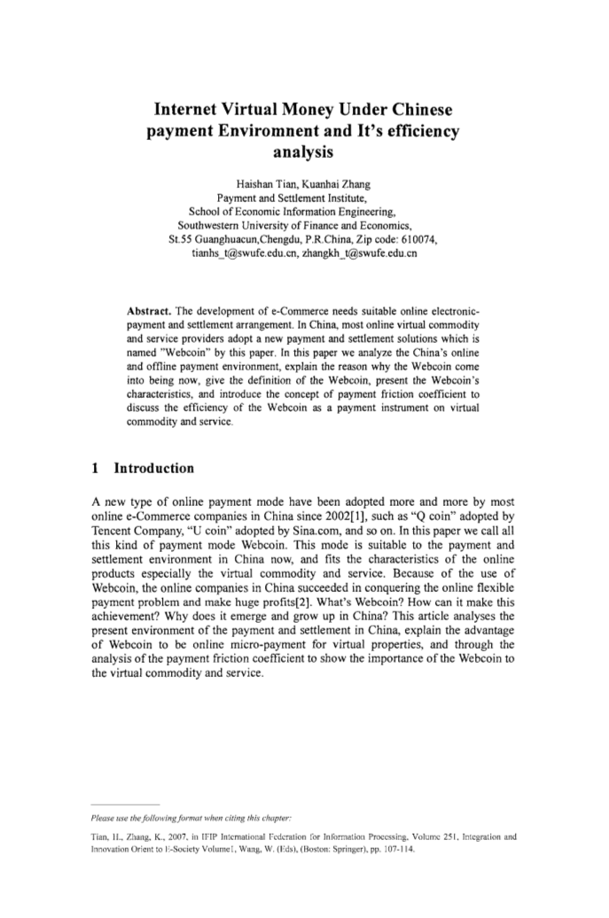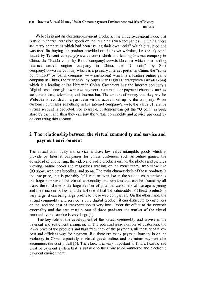 自2002年以来,越来越多的电子商务企业开始采用一种新型的线上支付手段,比如腾讯公司发行的Q币和新浪公司发行的U币等。本文中,我们统一将所有涉及这种类型的支付模式称为网络虚拟货币支付模式。这种支付模式十分适用于中国现有的支付结算环境,同时,它也充分满足了各种网上商品的支付需求,尤其是各种虚拟商品和虚拟服务。而正是网络货币的出现及广泛使用,使得中国众多的线上企业得以克服诸多支付方面的难题并取得较大获利。那么,究竟网络货币是什么,它是如何引起如此巨大轰动的呢,它是如何产生并得以迅速发展的?本篇文章将会分析中国现有的网络支付和结算环境,并阐述网络货币作为新兴线上小额支付手段在虚拟货品的交易过程中具备的优势,最后通过对支付摩擦系数的一系列分析来体现网络货币对于进行虚拟商品和虚拟服务交易的重要性。