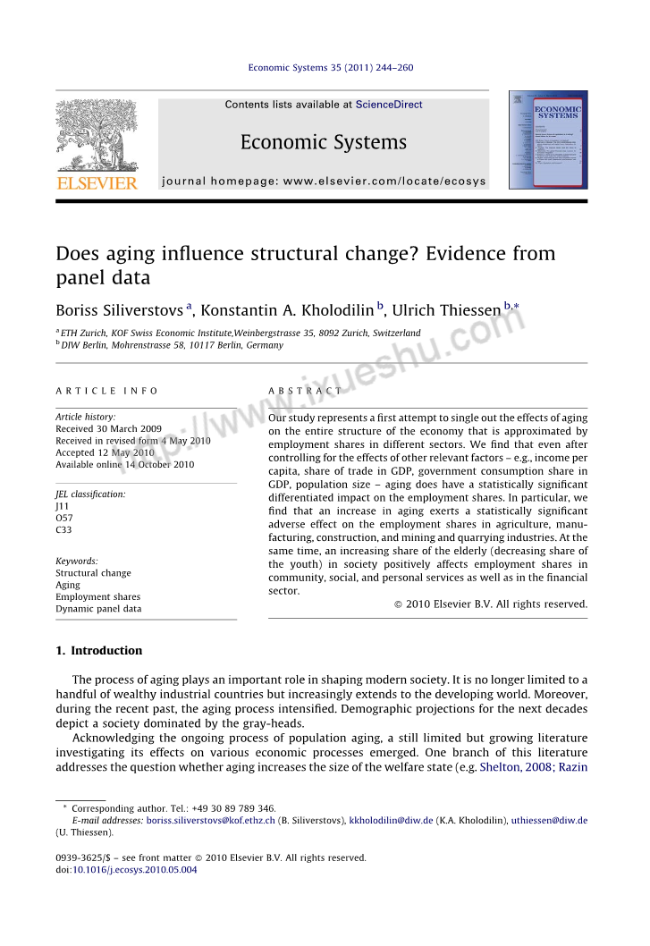 关键词:结构变化;人口老龄化;就业份额;动态面板数据