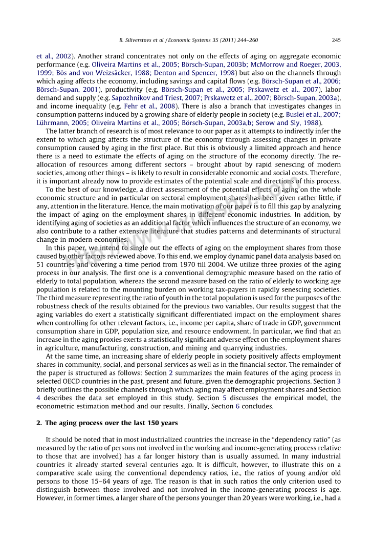 最后一个研究分支与我们的论文主题最为相关,因为它试图通过首先评估老龄化导致的私人消费变化来间接推断老龄化对经济结构的影响程度。但显然这是一种局限的方法,因此需要直接估计老龄化对经济结构的影响。由于现代社会的迅速老龄化等因素导致不同部门之间的资源需要重新分配,这可能需要相当大的经济和社会成本。因此,目前重要的是提供该过程的潜在规模和方向的估计。