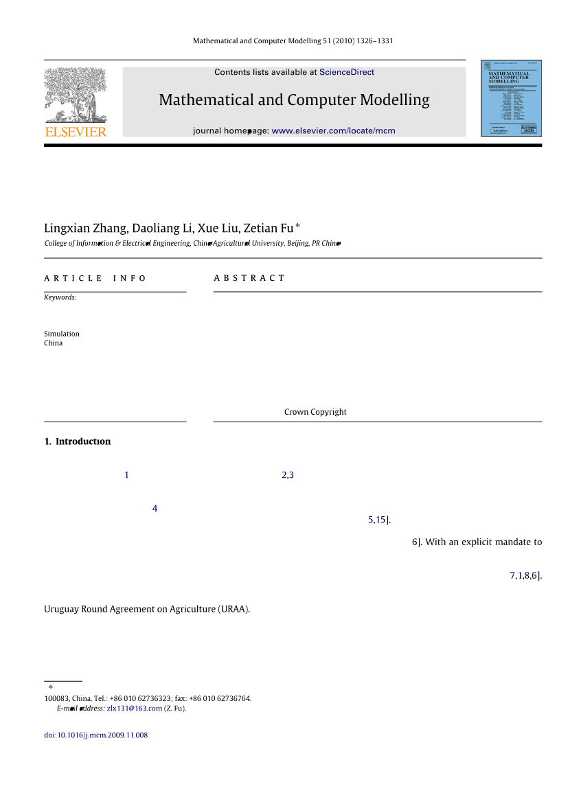 张灵贤,李道良,刘雪,傅泽田,lowast;