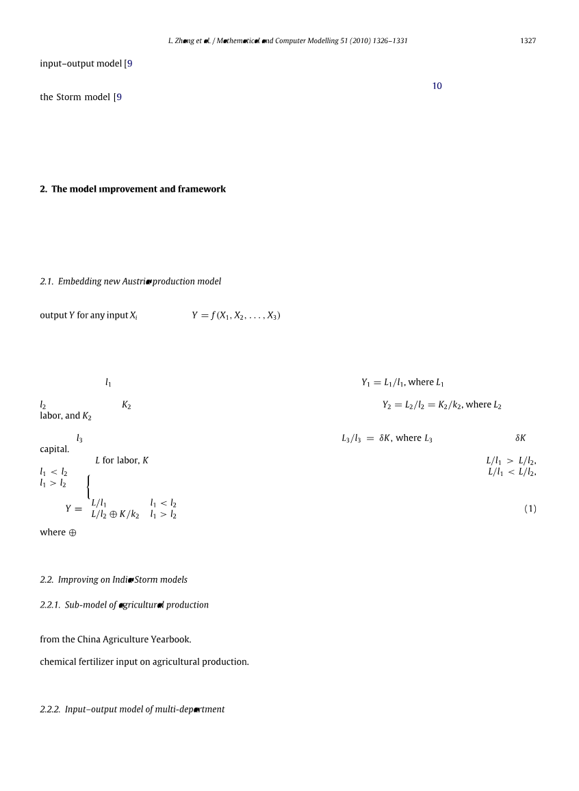 让Yi,Ki和Li分别表示非农业部门的生产函数(i D 6,7,8,9),非农业部门的资本存量和非农业部门的劳动力。非农业部门的生产功能被规定为科布道格拉斯生产函数: