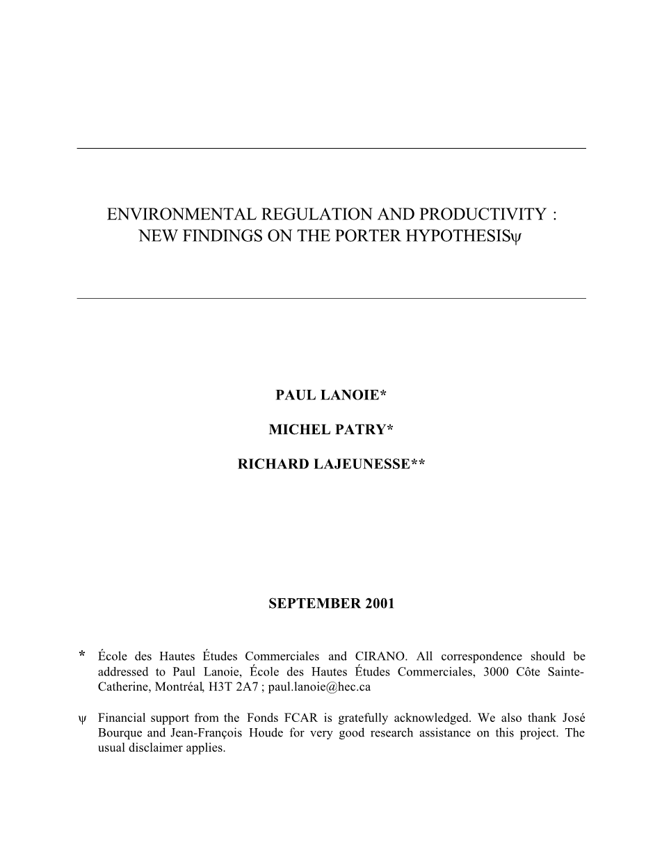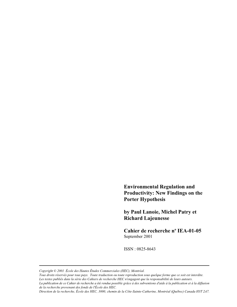 作者Paul Lanoie,Michel Patry和Richard Lajeunesse