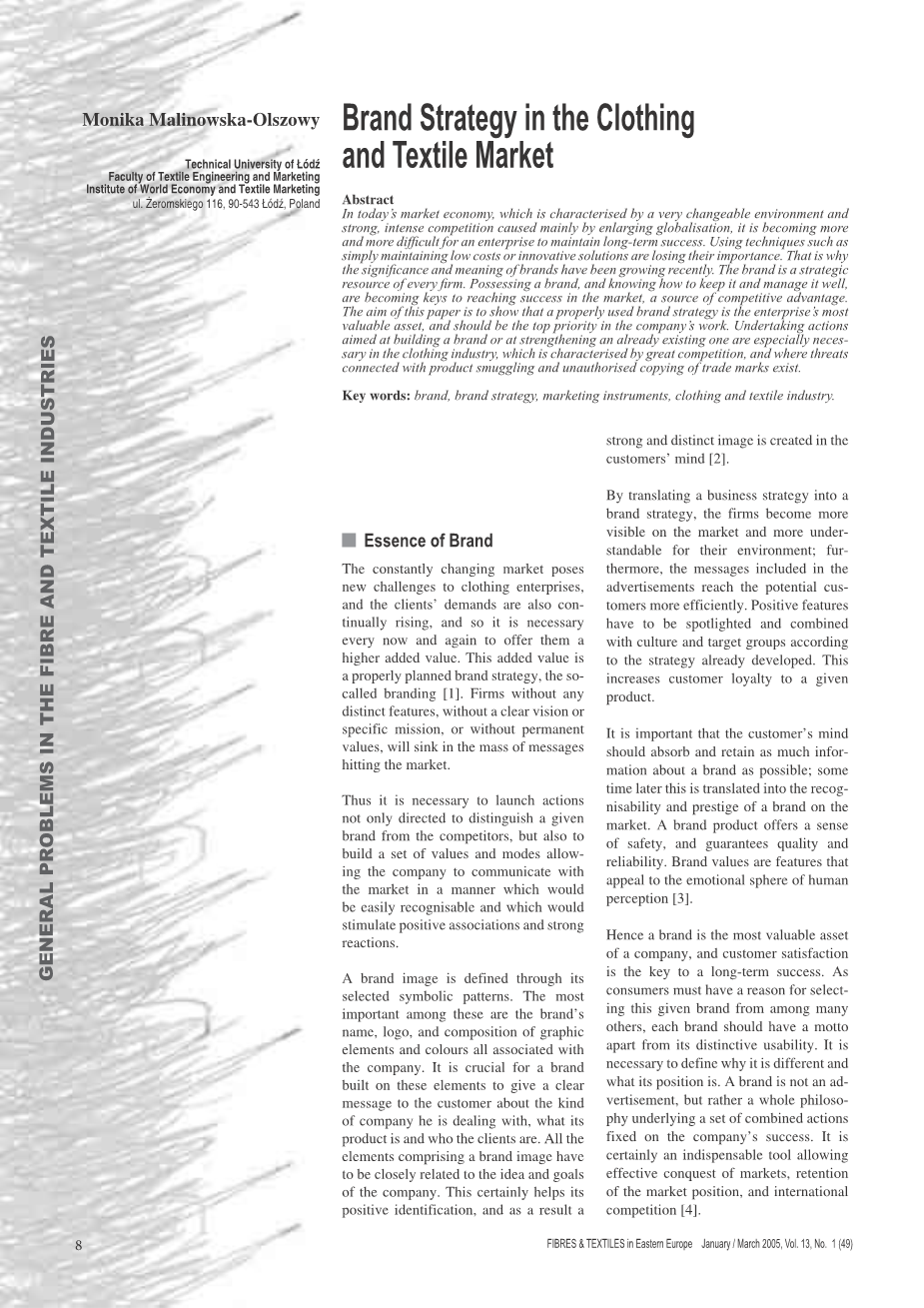 欧洲范围内的全球化引发了许多挑战,因此为了建立和保持竞争优势,必须不断地对全球环境的变化作出反应,因为对近邻的威胁和机会的简单监测已经不够了。1990年代后半期,连同自由进入欧盟市场,为与成员国的贸易的动态发展带来了巨大的机会。毫无疑问,这在各个工业部门都是显而易见,尤其是在服装行业。波兰的服装业曾经强大,如今正处于一个艰难的经济形势。除了少数几家在新环境中管理良好的公司之外,我们在市场上拥有强大的外国公司作为竞争对手,更不用说在灰色地带靠走私产品和锻造标志经营的企业。因此,确定我们的市场份额并运用现代营销方法是非常重要的。