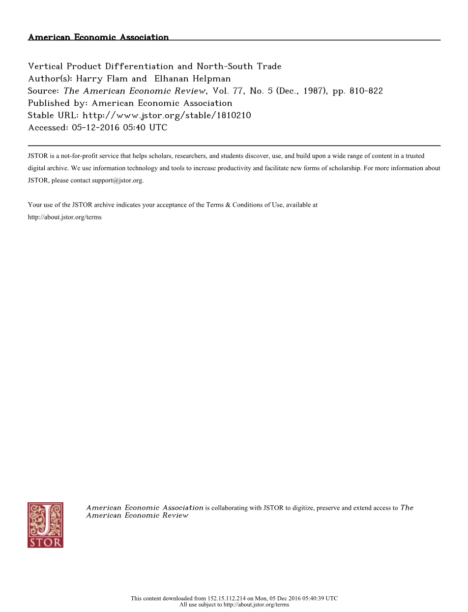 我们建议一种基于垂直产品差异化的南北贸易的替代模式。也就是根据质量的差异。它预测了由于人口增长和技术进步,贸易动态的有趣模式。特别是,它预示出新的,高品质的产品的出现,以及旧的,低质量的产品的消失(参见此处的Nancy Stokey,1986)。它还预测了基于质量的产品周期;也就是说,当北方将生产提高到更高品种的时候,放弃生产由南方生产的低质量产品。 国际贸易的结构取决于技术、收入和来源分布的跨国差异。